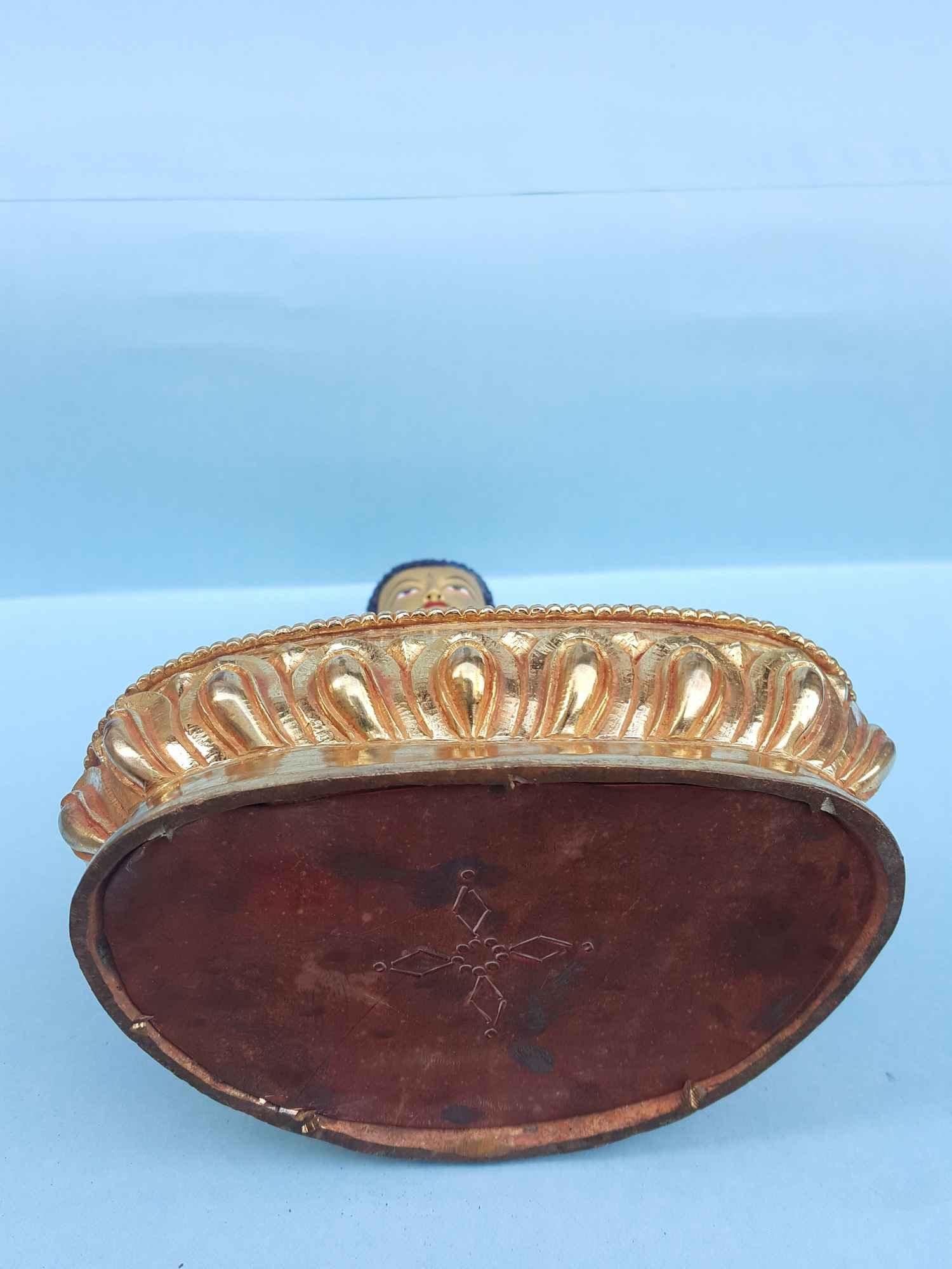 This is the Nepali handmade statue, made by the process of los wax system with the skillful hands of Nepali crafts man from Patan a famous city inside Kathmandu valley popular for metal crafts.