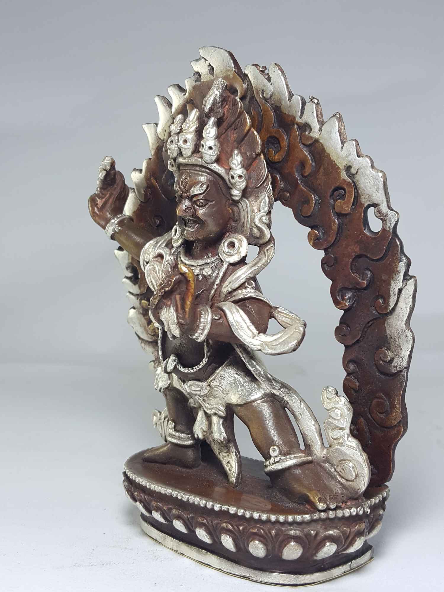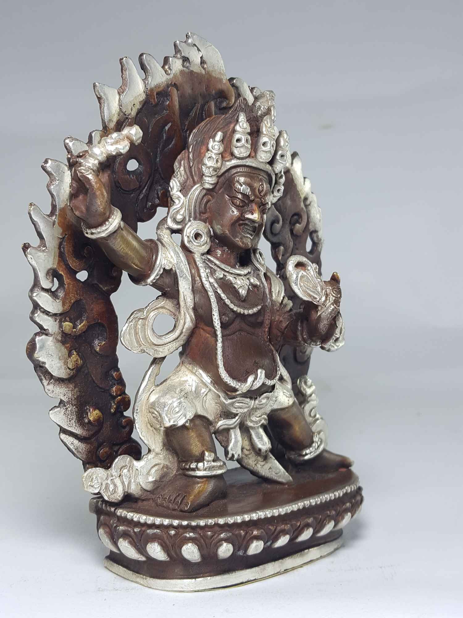 Statue of Vajrapani Chana Dorje, Silver Plated, Chocolate Oxidized , Protector of Buddha’s teachings, symbolizing power and fearlessness