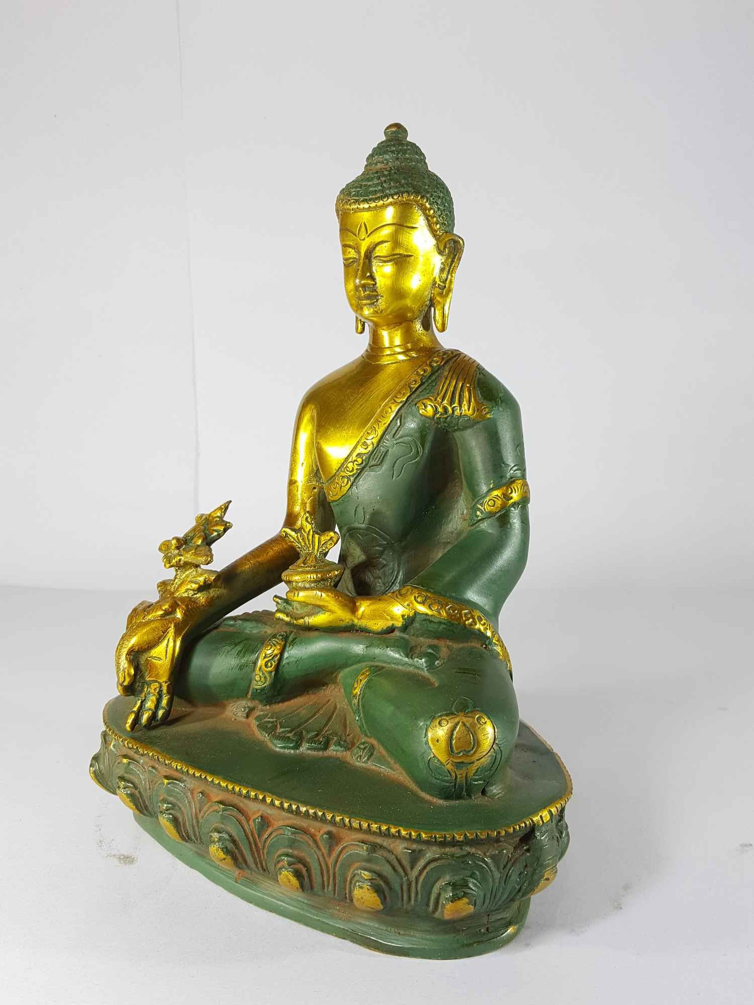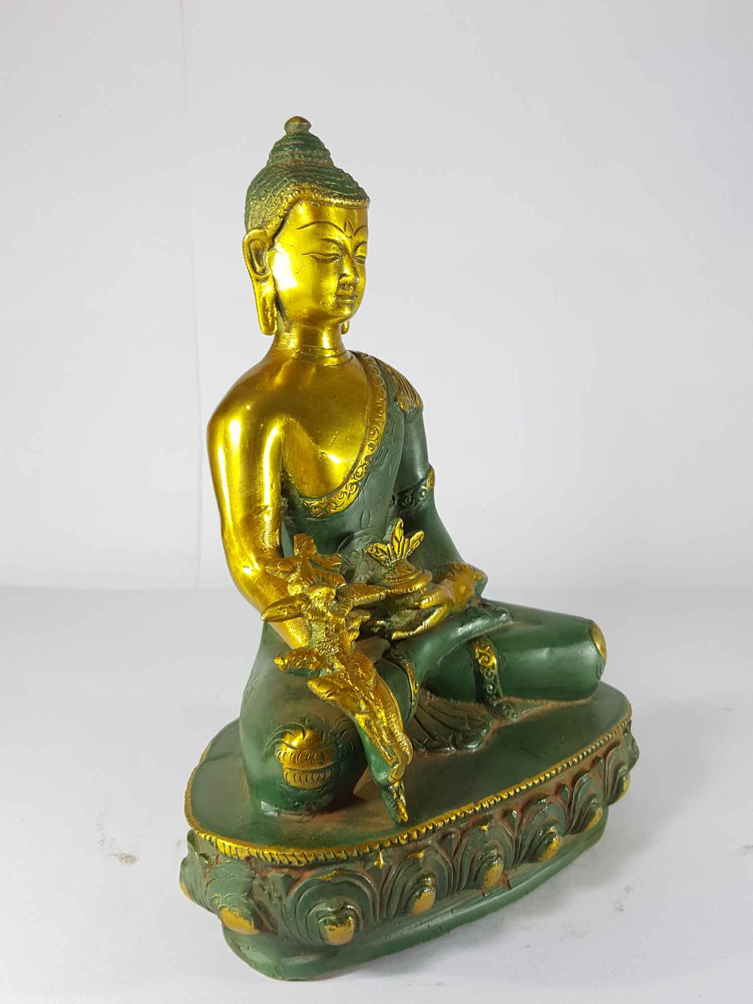 Medicine Buddha Statue Sand Casting, Green Antique , Healer of physical and spiritual ailments, bringer of health and peace