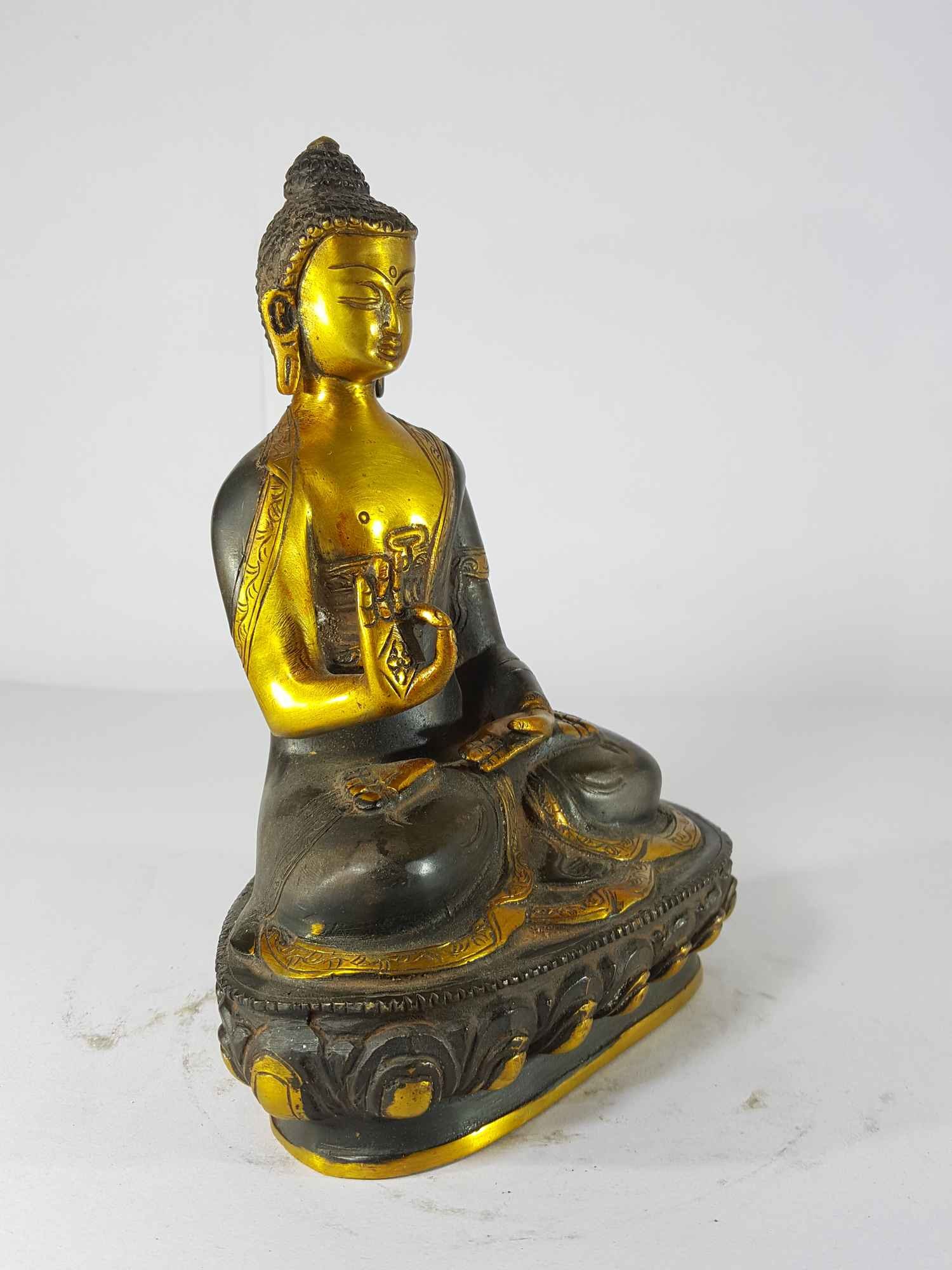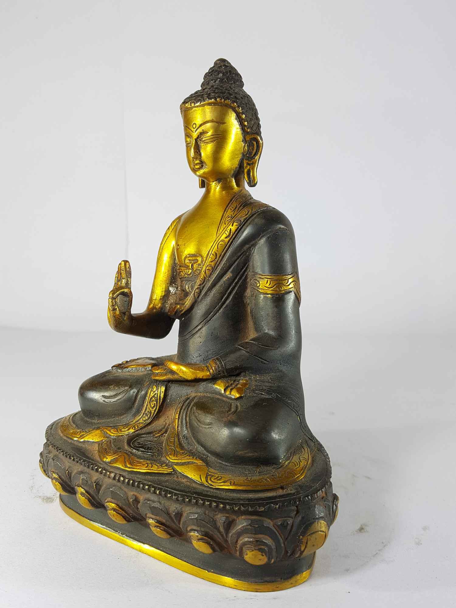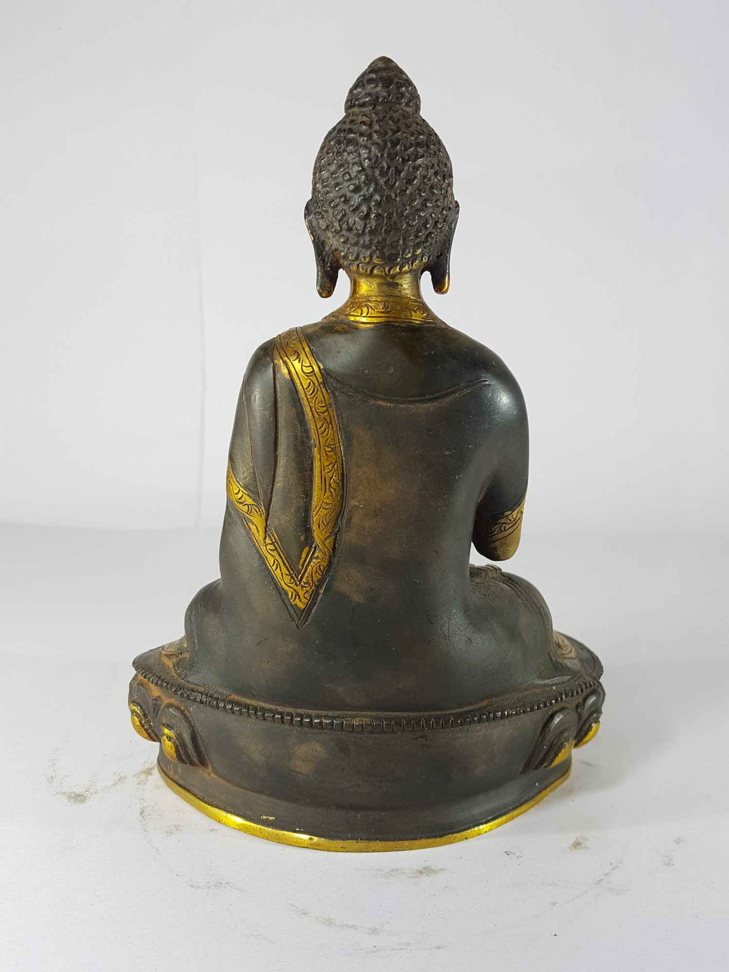 Blessing Buddha - Amoghasiddhi Buddha Statue Sand Casting, Black Antique , Victory Over Fear, Wisdom, and Compassion for Enlightenment