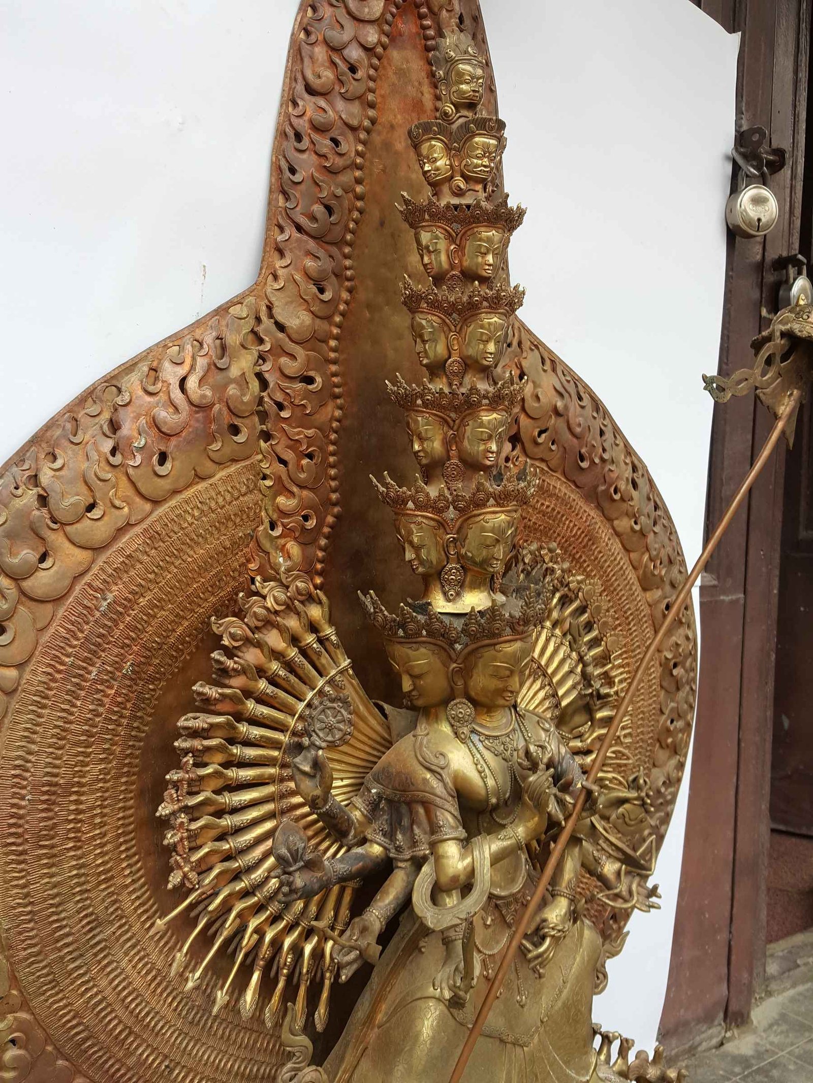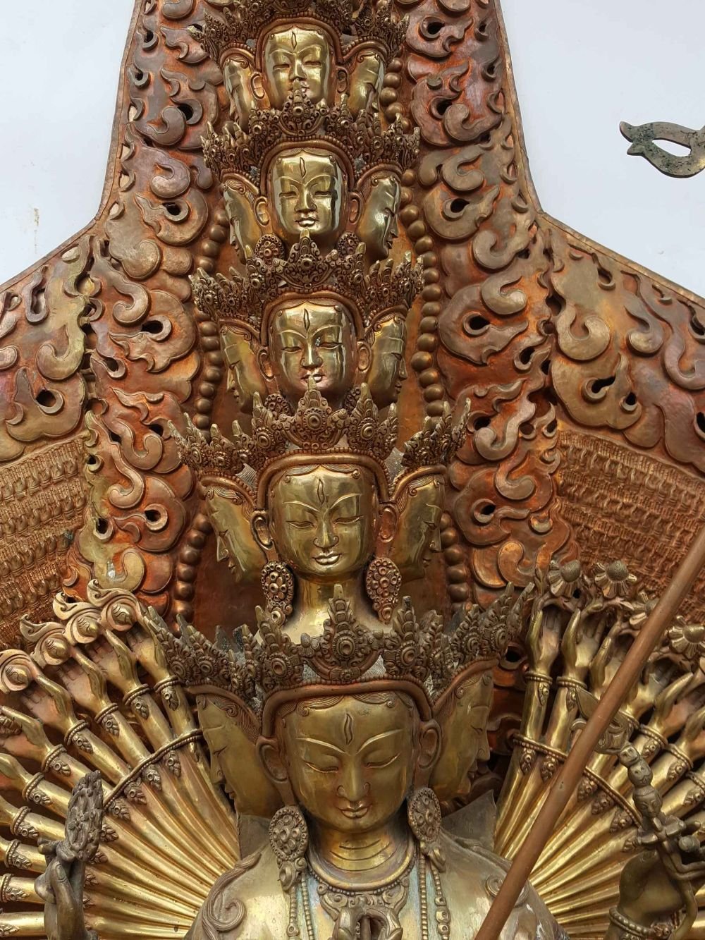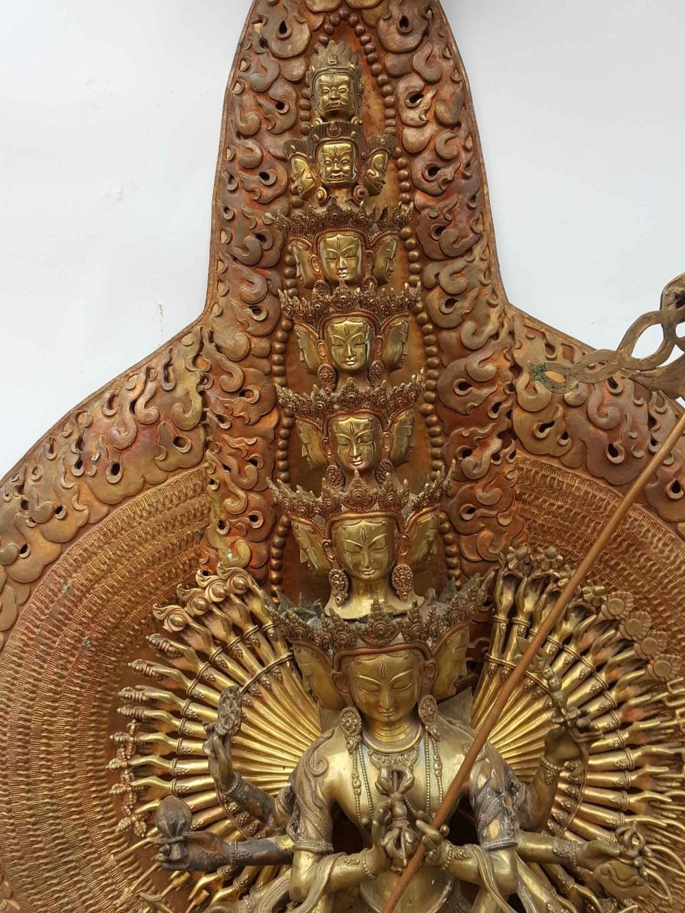 There are several different forms of Sitatapatra including: with one face and two arms; with three faces and six arms; with three faces and eight arms; with three faces and ten arms; with five faces and ten arms; and, with 1000 faces, 1000 arms and 1000 legs