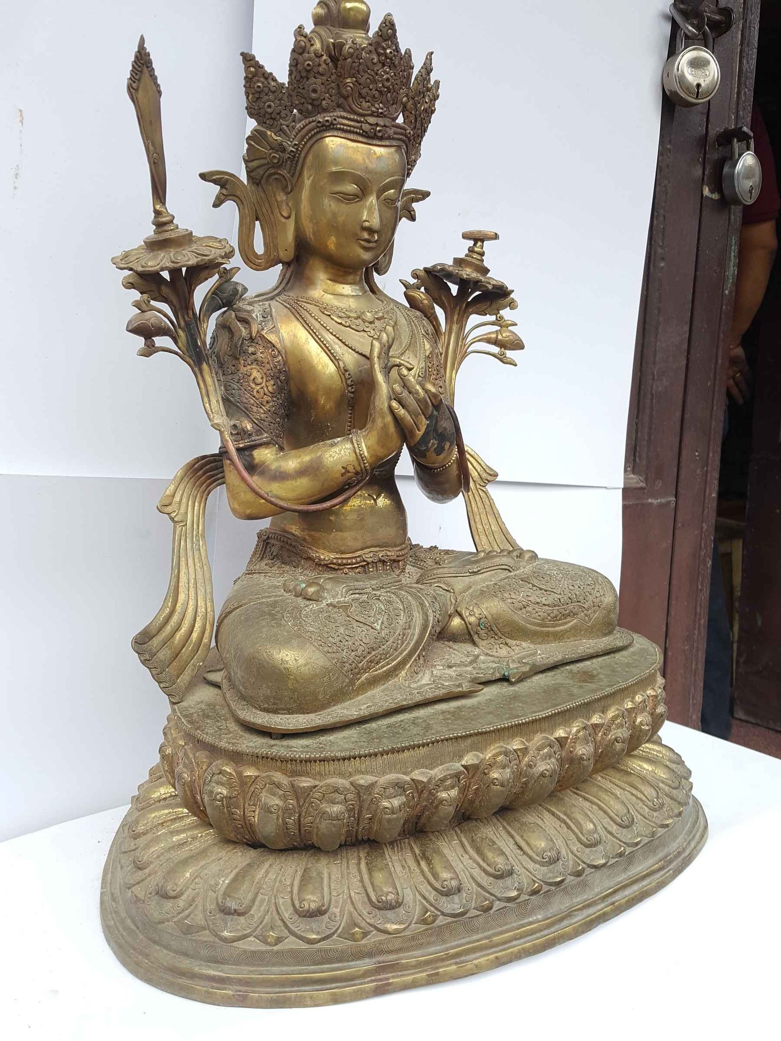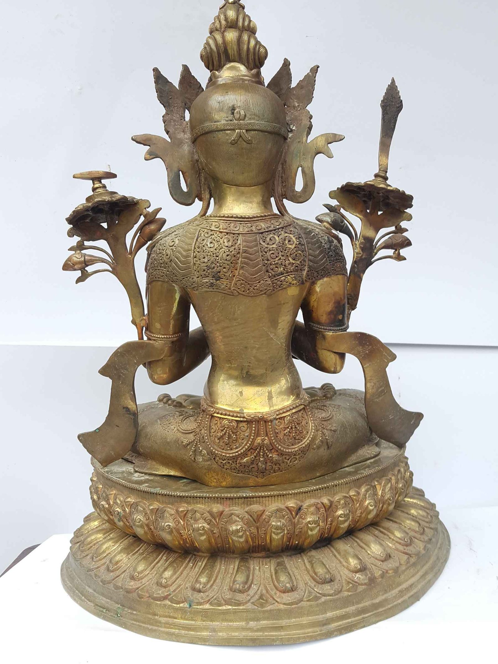 This is the Nepali handmade statue, Made by the process of los wax system with the skillful hands of Nepali crafts man from Patan a famous city inside Kathmandu valley popular for metal crafts.