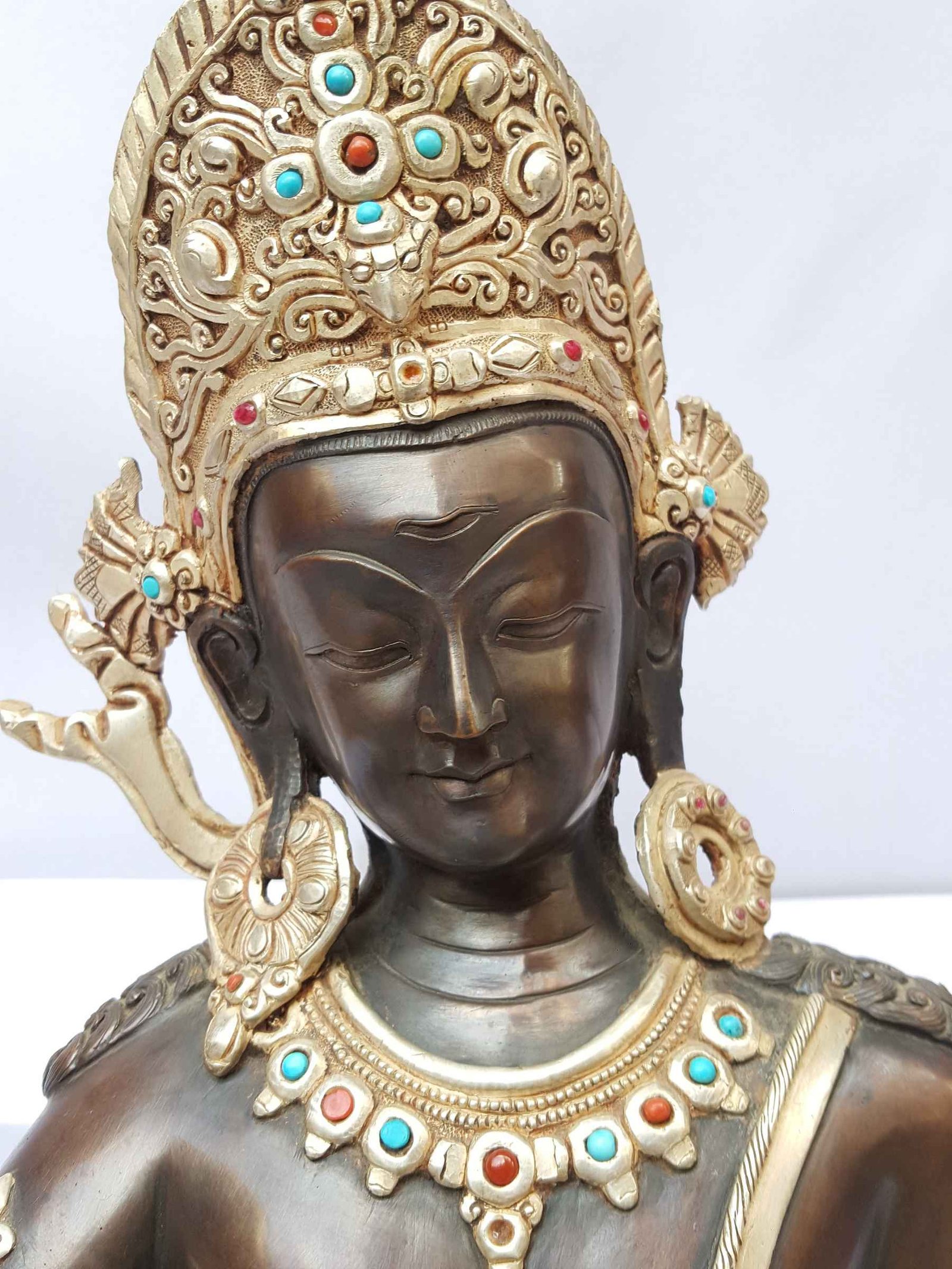 This is the Nepali handmade statue, Made by the process of los wax system with the skillful hands of Nepali crafts man from Patan a famous city inside Kathmandu valley popular for metal crafts.