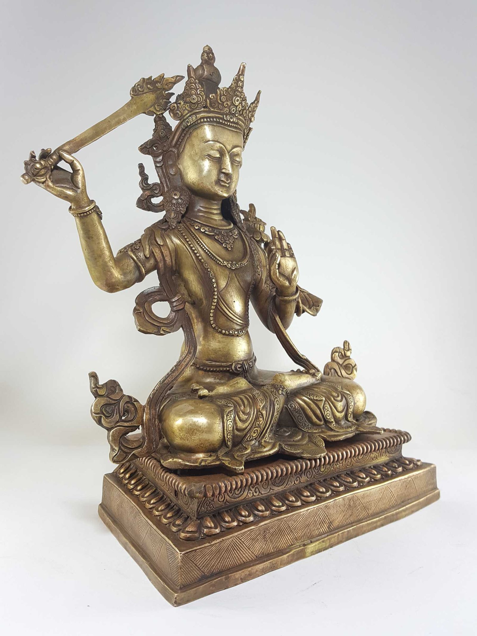 Manjushri Statue Bronze Finishing Plus 30 Years , Wisdom Buddha, cutting through ignorance with the sword of insight