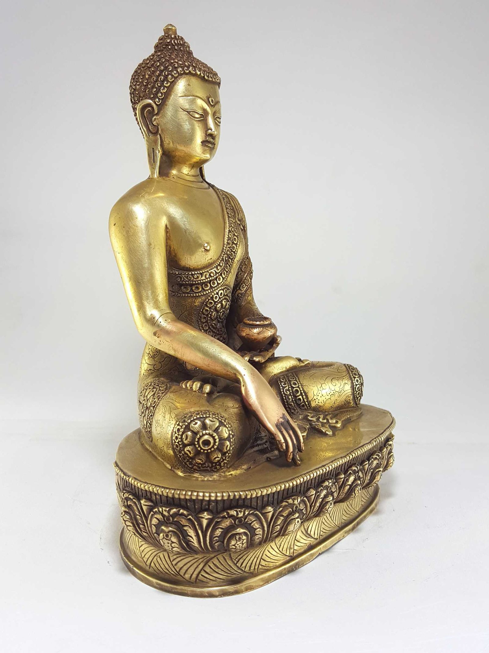 This Shakyamuni Buddha product features a stunning Bronze patina finish. Our store takes pride in offering this exclusive patina, which involves a meticulous process utilizing organic materials such as butter and vegetable color. The aim is to recreate the appearance of an aged bronze statue, evoking a sense of timeless elegance.