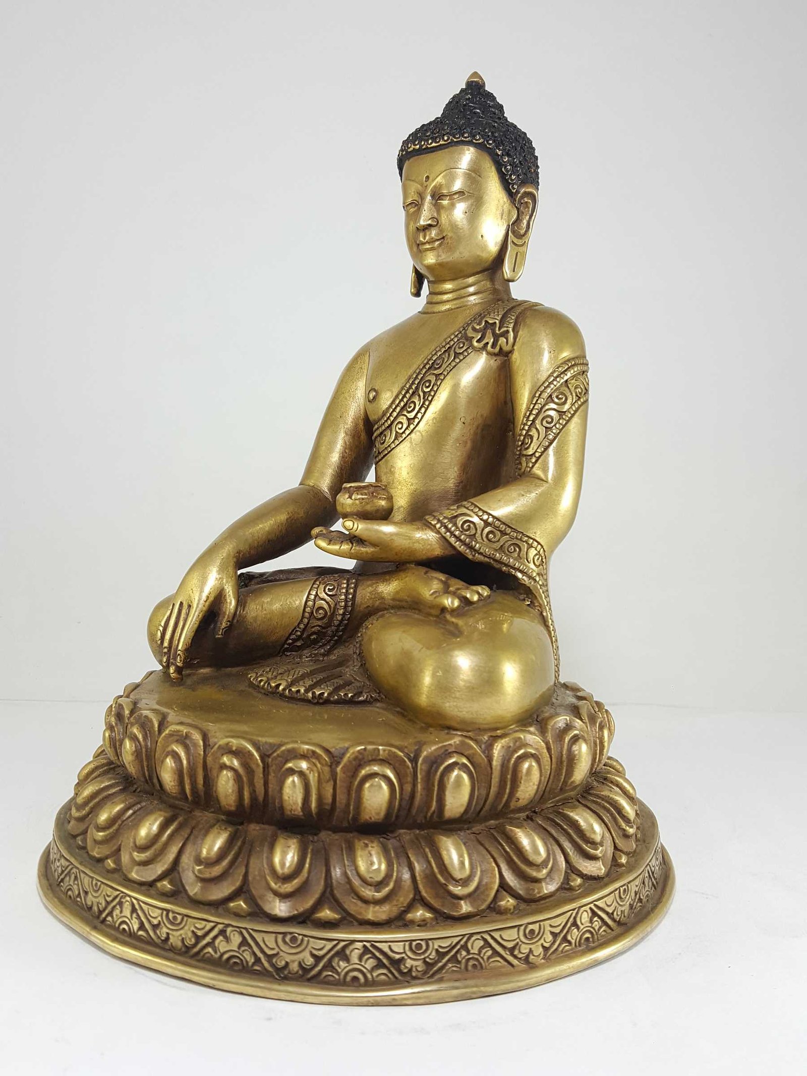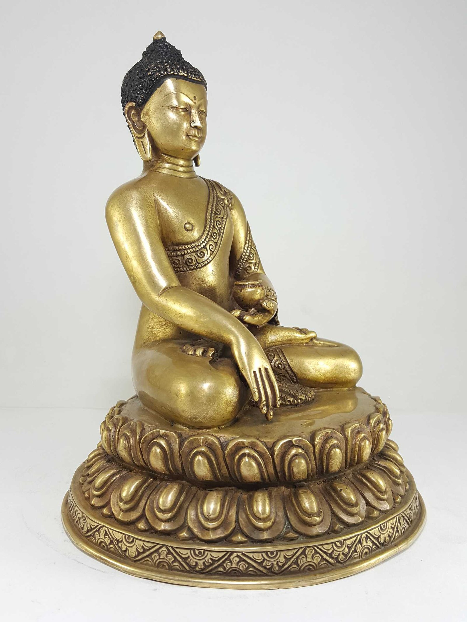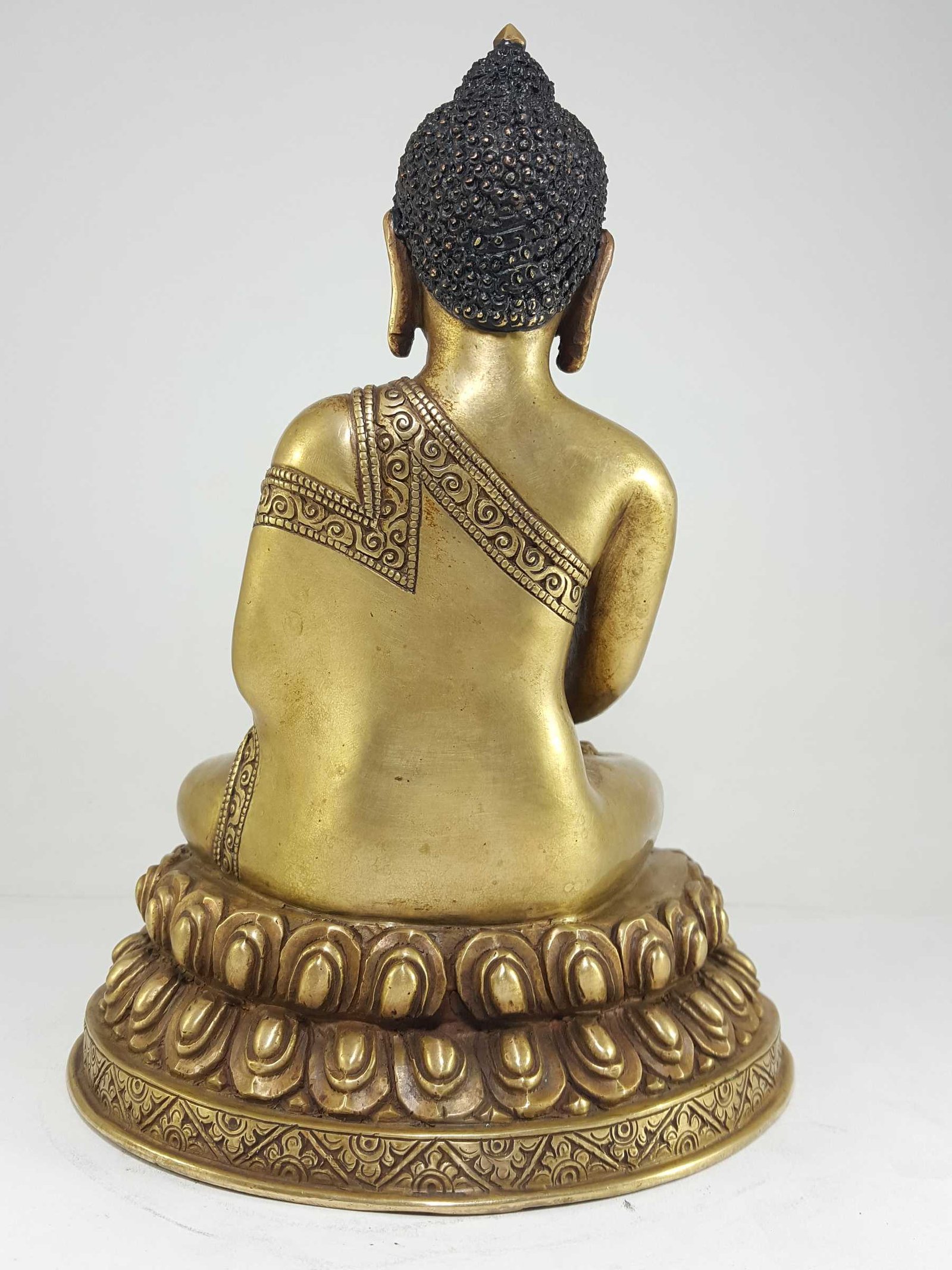 Unique High Quality Statue of Shakyamuni Buddha with Double Lotus Base and Newari Statue, Bronze Finishing , The Enlightened One and Teacher of Humanity