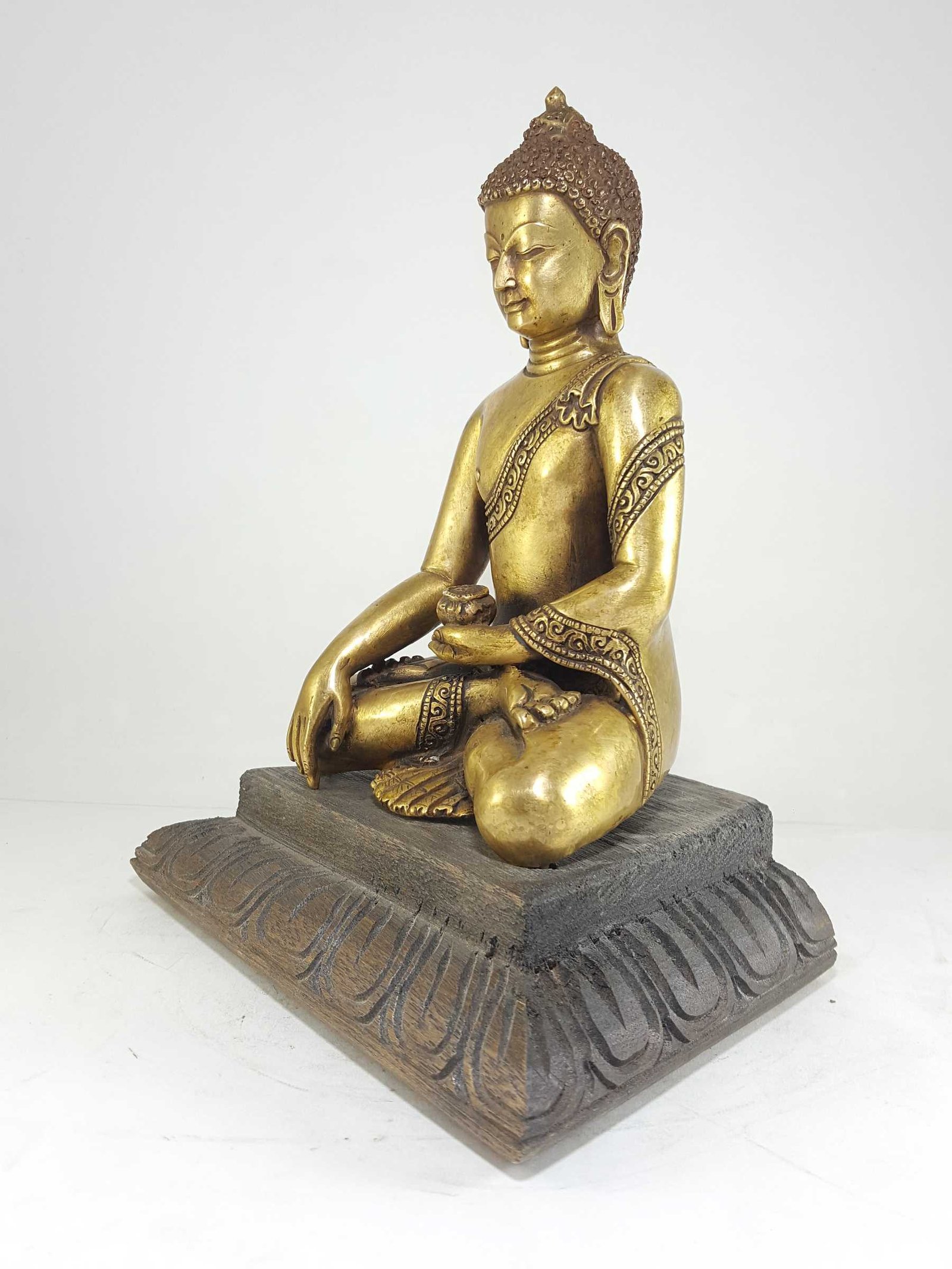 This Shakyamuni Buddha product features a stunning Bronze patina finish. Our store takes pride in offering this exclusive patina, which involves a meticulous process utilizing organic materials such as butter and vegetable color. The aim is to recreate the appearance of an aged bronze statue, evoking a sense of timeless elegance.