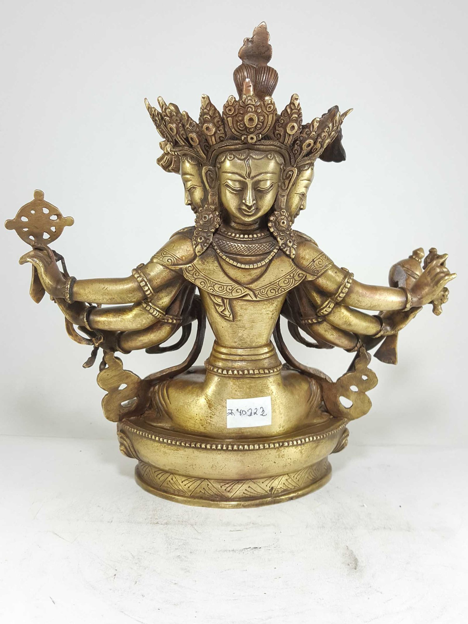 There are several different forms of Sitatapatra including: with one face and two arms; with three faces and six arms; with three faces and eight arms; with three faces and ten arms; with five faces and ten arms; and, with 1000 faces, 1000 arms and 1000 legs