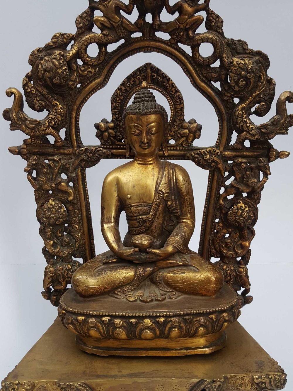 Statue of Amitabha Buddha Full Fire Gold Plated, and Antique Finishing , Buddha of Infinite Light: Symbol of Boundless Compassion