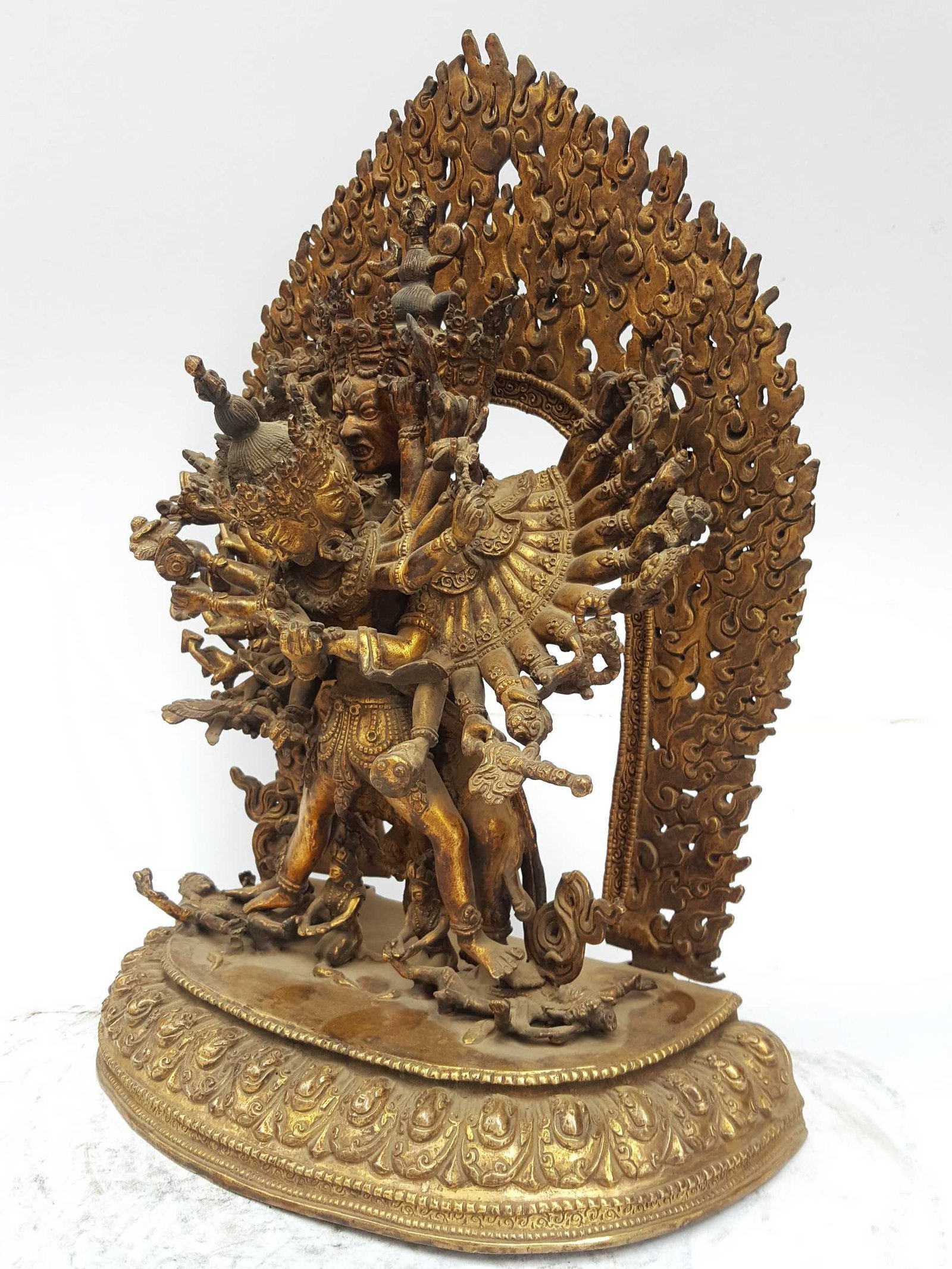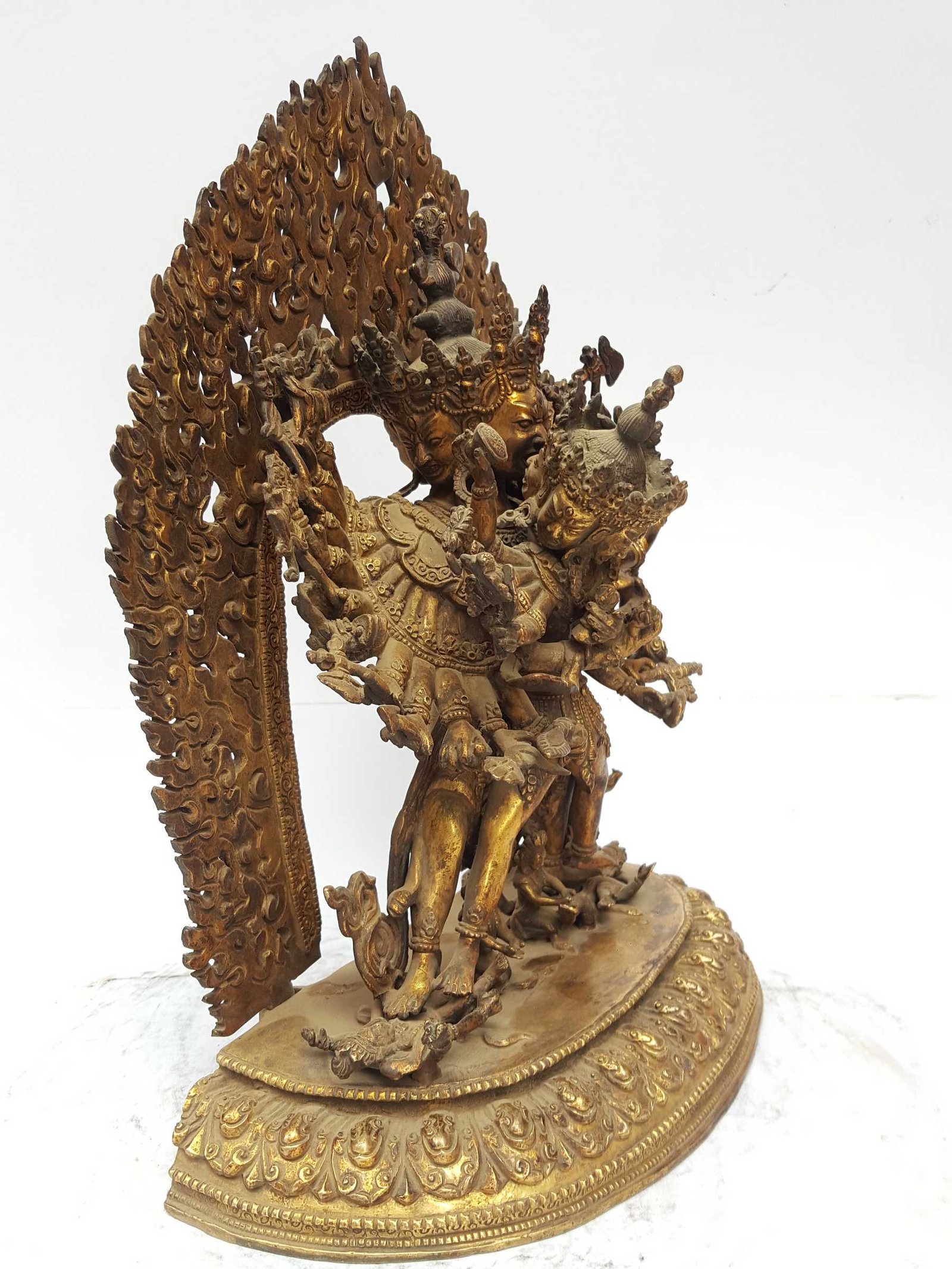 Statue of Kalachakra with Consort, Shakti, Yab-Yum Full Fire Gold Plated, and Antique Finishing , Wheel of Time, Symbol of Universal Cycles and Enlightenment