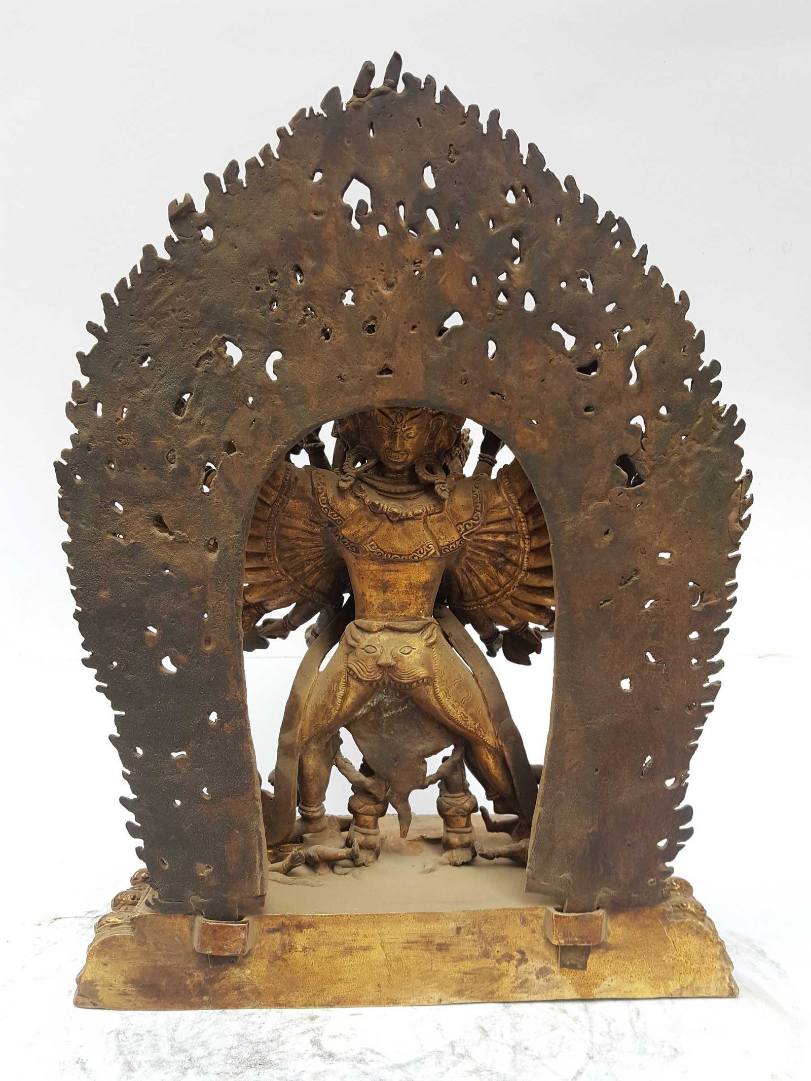 The Kalachakra has full gold plated antique finishing. This finishing is a combination of fire mercury gold plating and antique finishing. This traditional technique involves the application of a genuine layer of gold onto the Kalachakra using the time-honored process of mercury gold plating. Skilled artisans meticulously handle the amalgamation of gold with mercury, ensuring precise application and a truly authentic result. To enhance its charm further, the Kalachakra undergoes an antique finishing process. This meticulous treatment adds a touch of age and character to the gold plating, creating a sense of antiquity. Through careful craftsmanship and the application of specialized techniques, the Kalachakra acquires a beautifully aged appearance that adds depth and uniqueness to its overall aesthetic. Read More