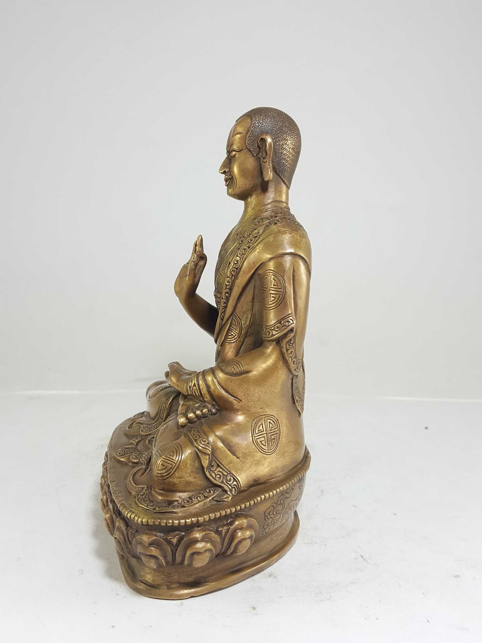 The art of giving the bronze color to red copper is truly exceptional and is practiced by skilled craftsmen. With each piece, you not only acquire a beautifully finished Khedrup Je Tsongkapa product but also pay homage to the artisans who are dedicated to preserving this rare and fading art form. The result is a unique and captivating aesthetic that adds a touch of sophistication and nostalgia to any setting. Read More
