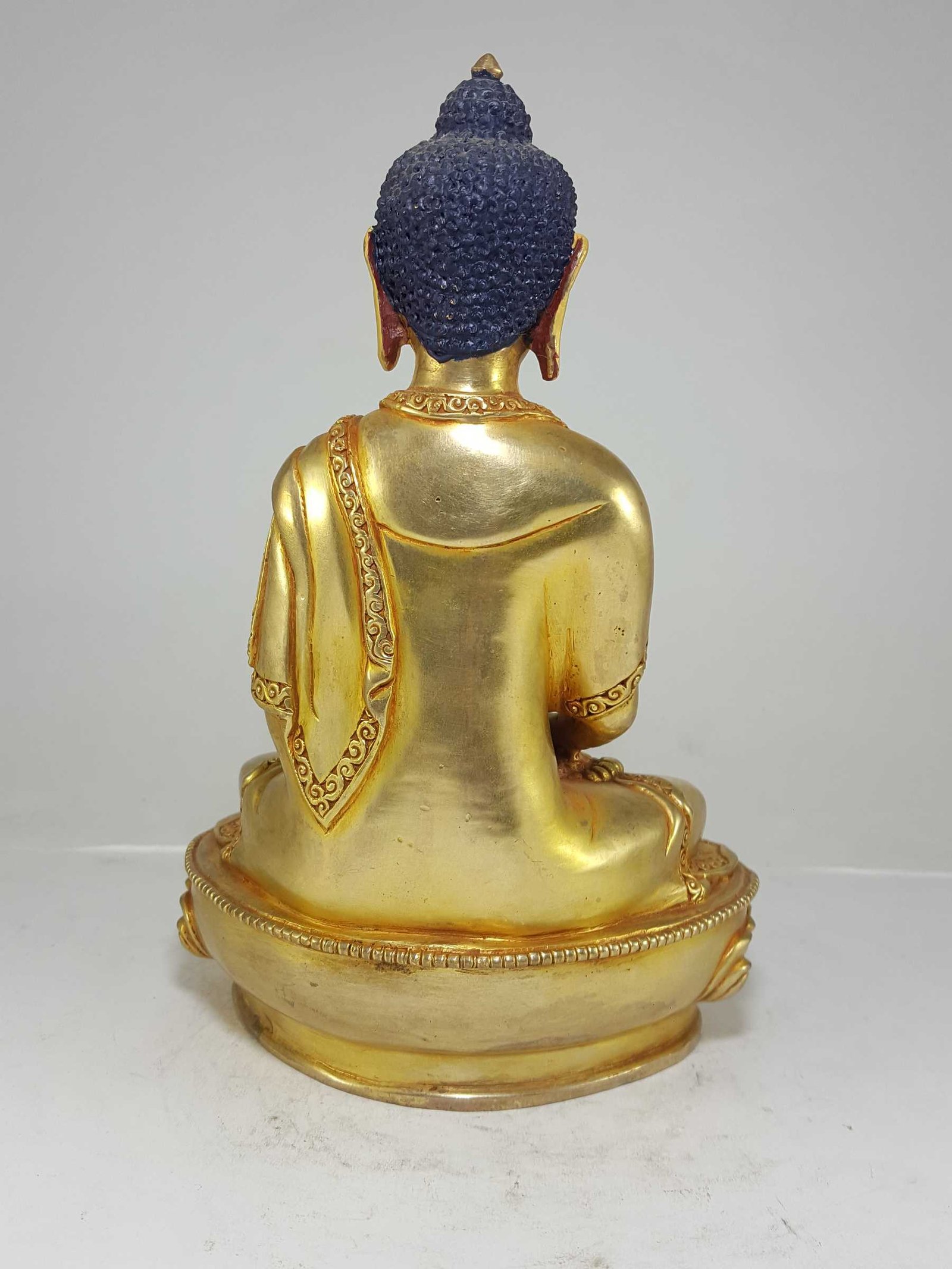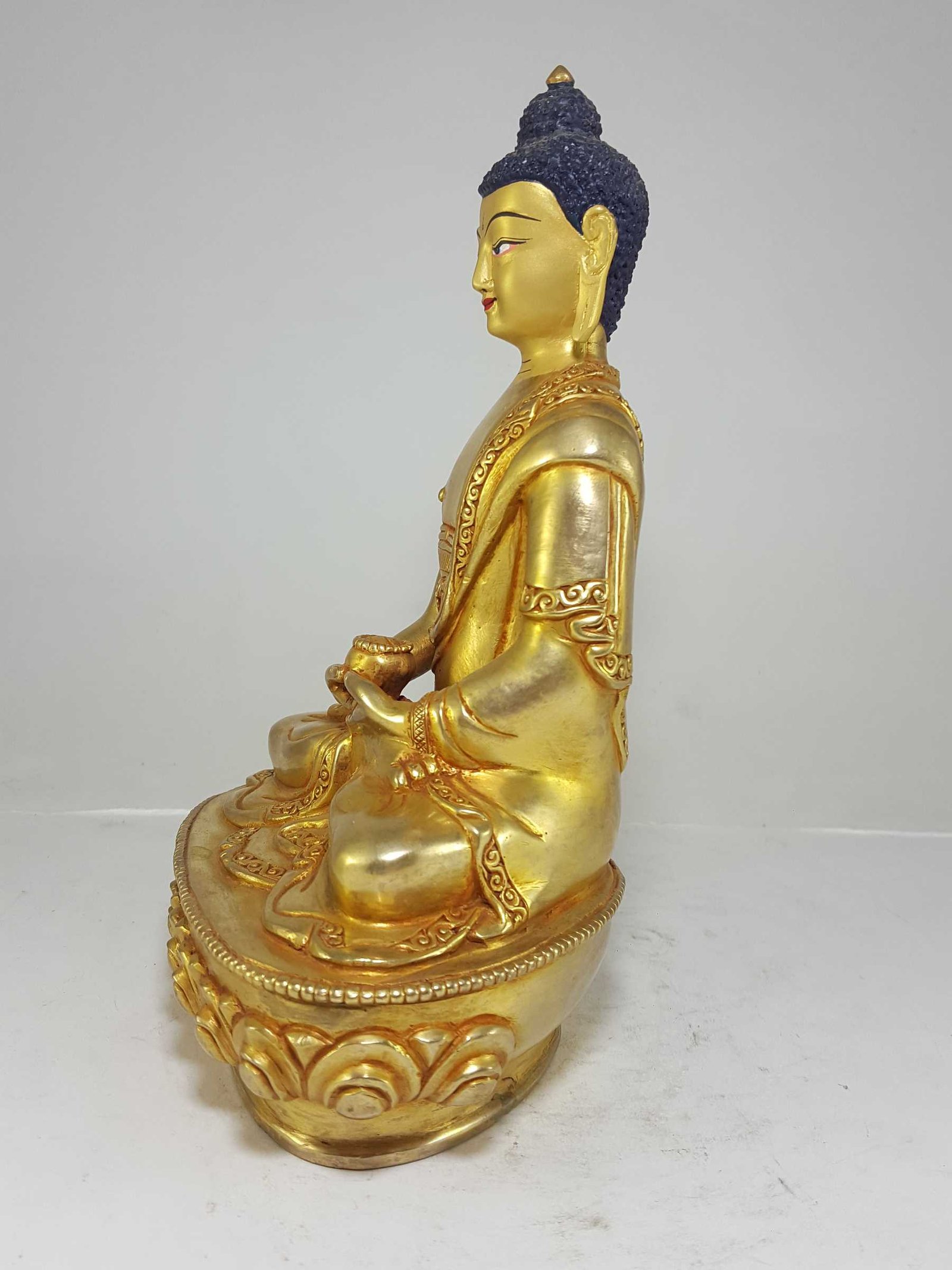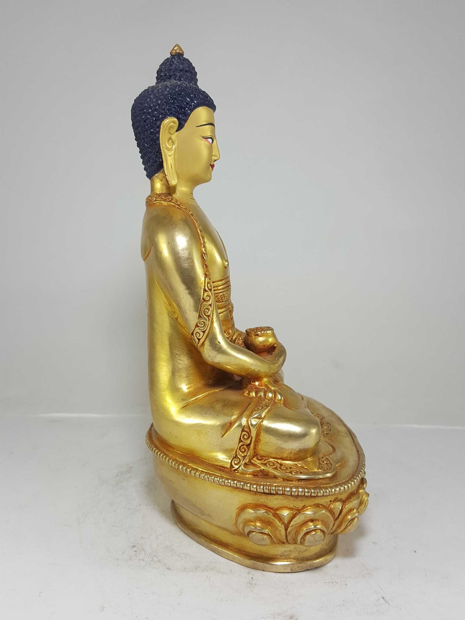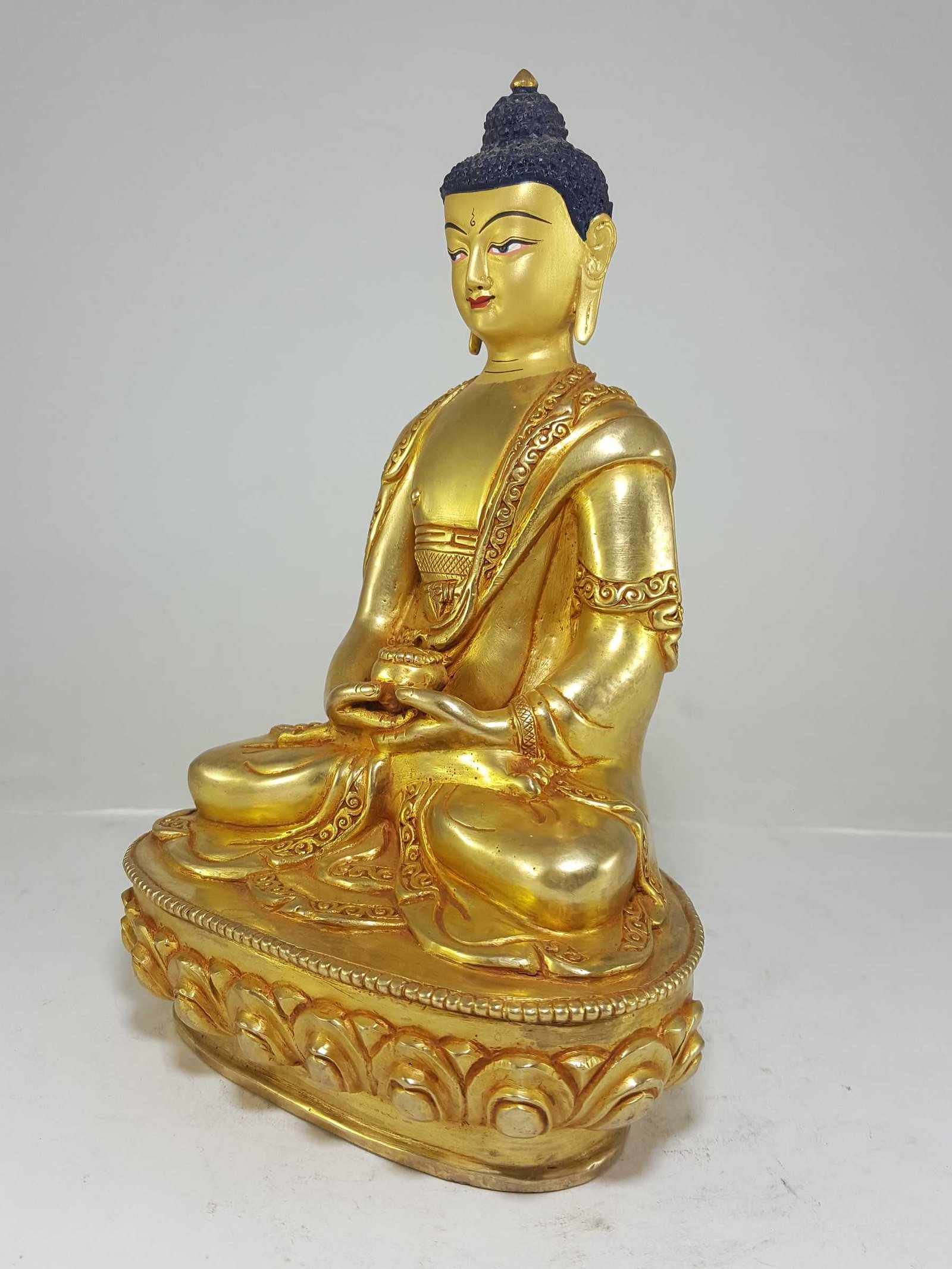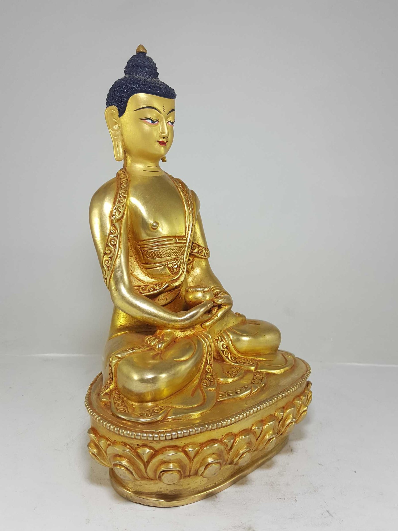 Statue of Amitabha Buddha Full Fire Gold Plated, with Painted Face , Buddha of Infinite Light: Symbol of Boundless Compassion