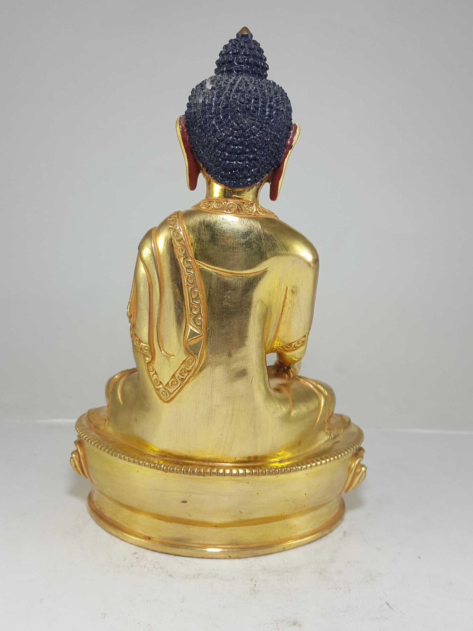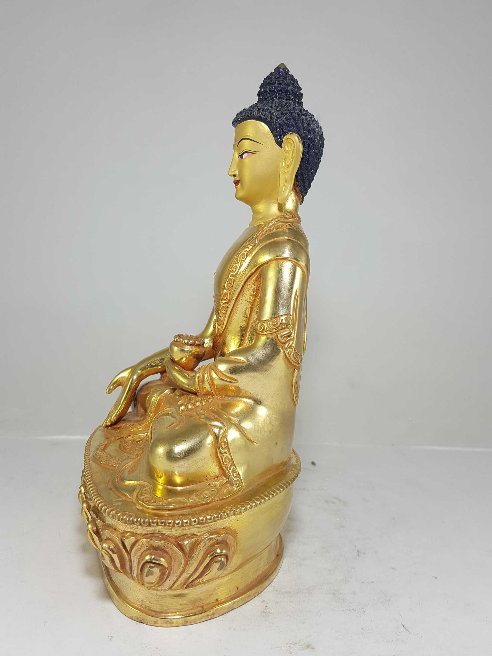 Statue of Ratnasambhava Buddha Full Fire Gold Plated, with Painted Face , The Buddha of wealth, generosity, and equanimity