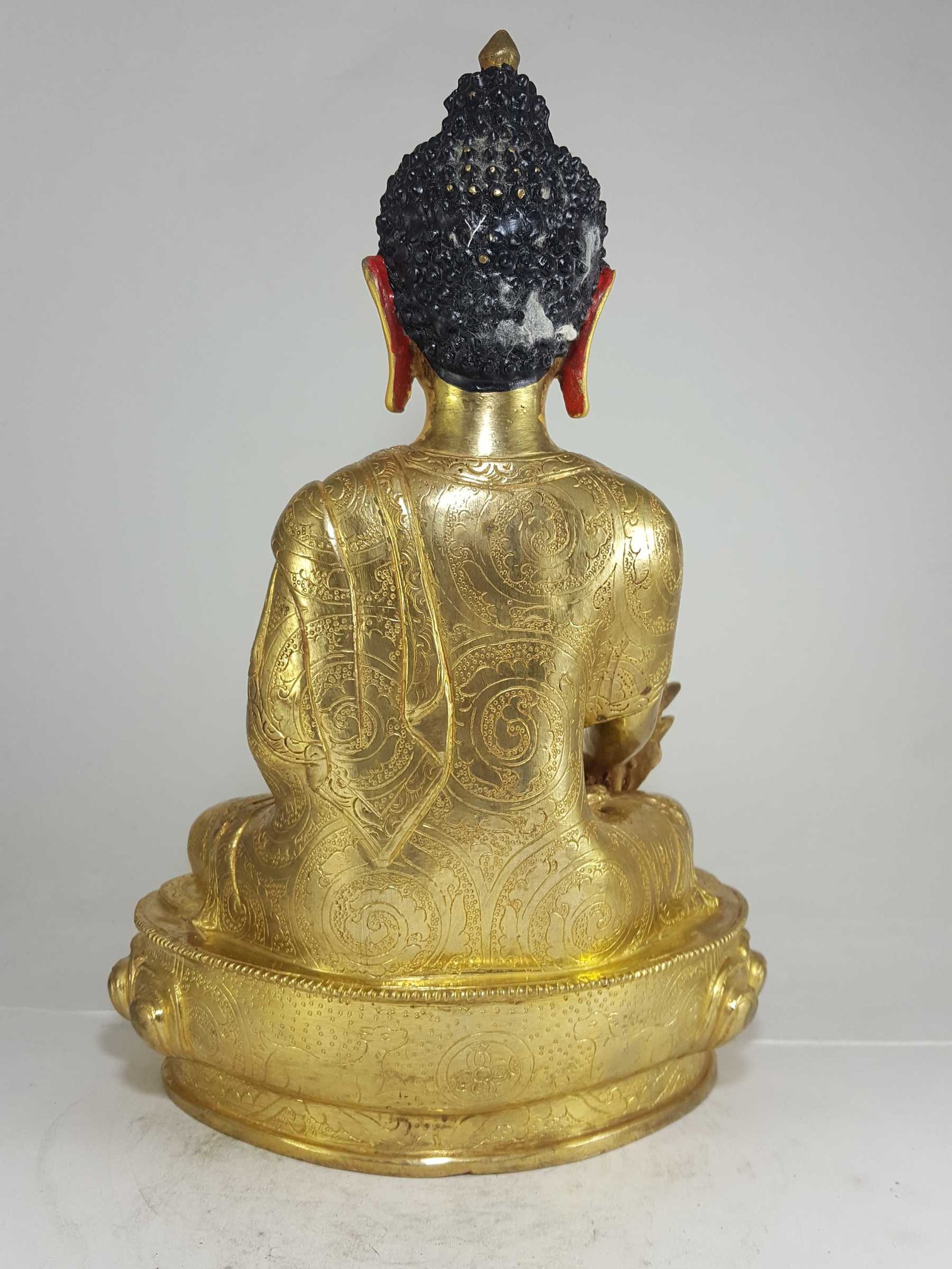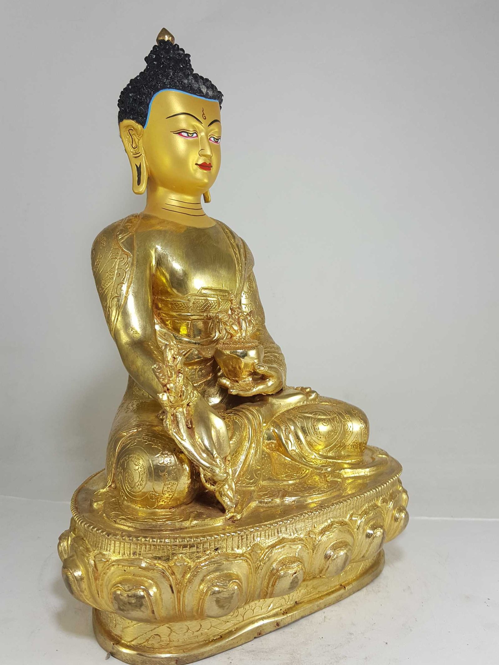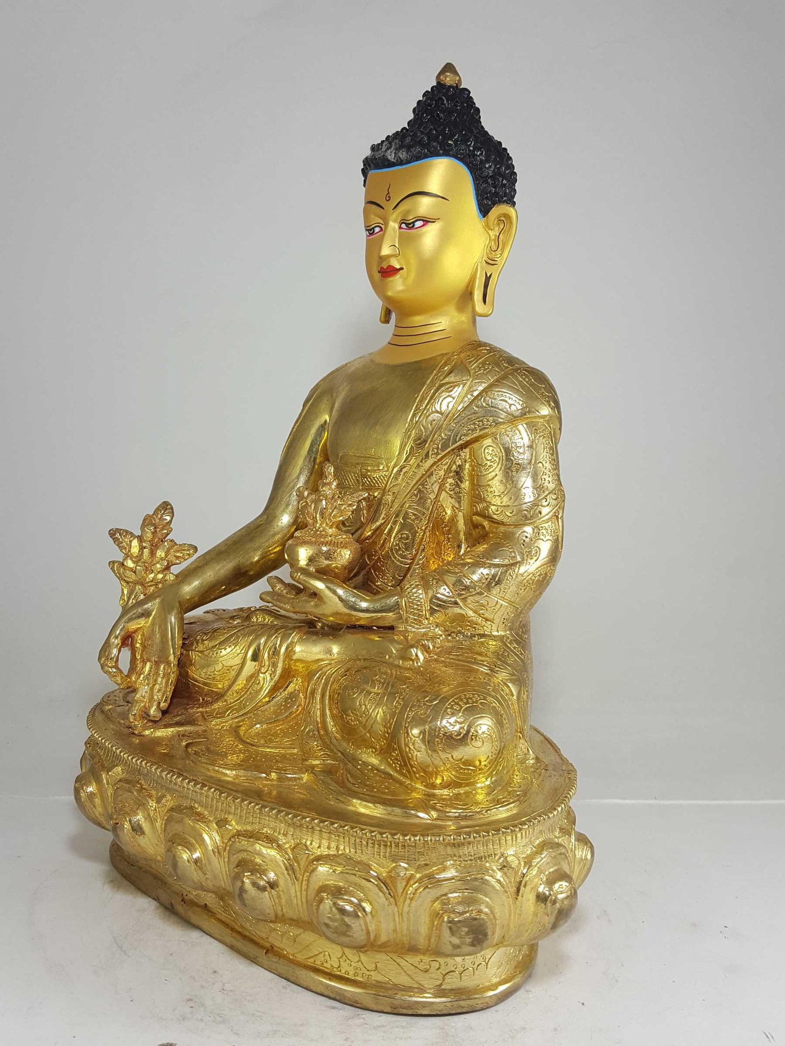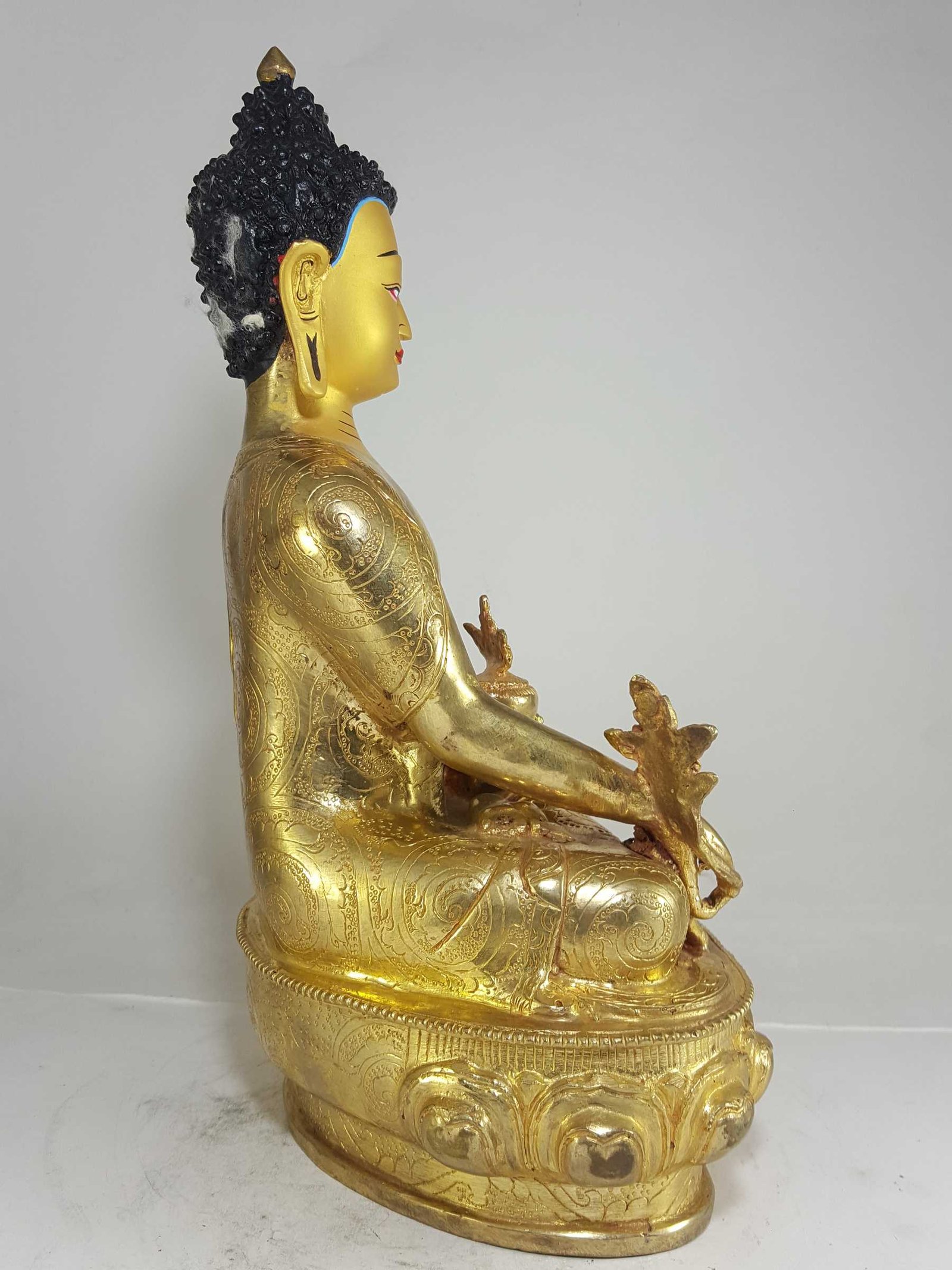 Statue of Medicine Buddha Full Fire Gold Plated and Painted Face , Healer of physical and spiritual ailments, bringer of health and peace