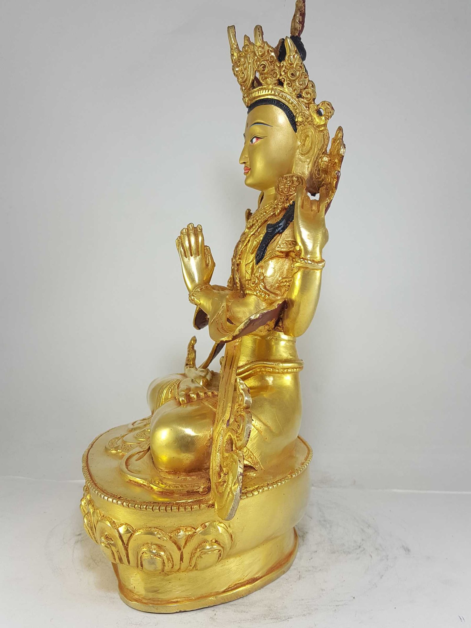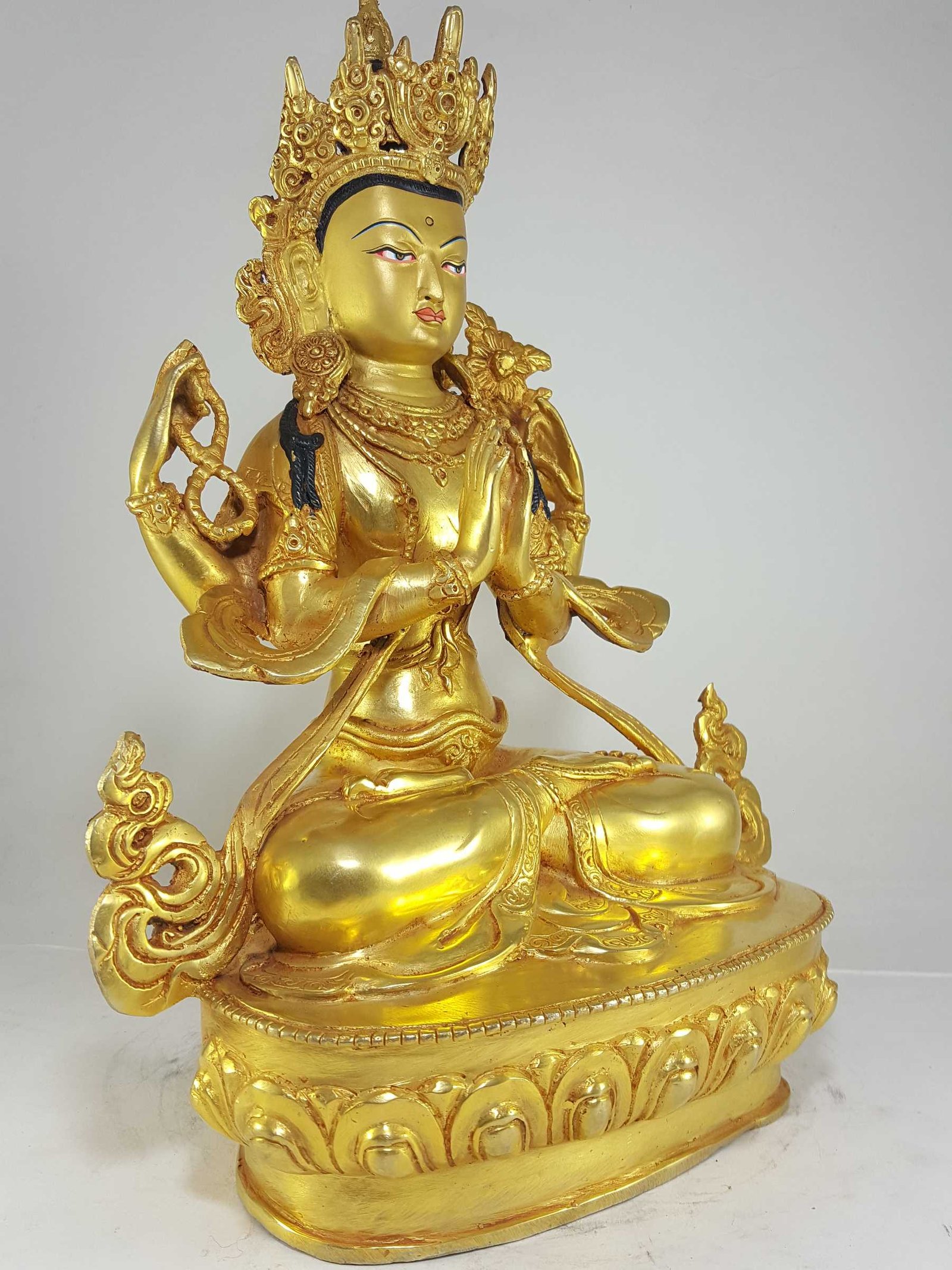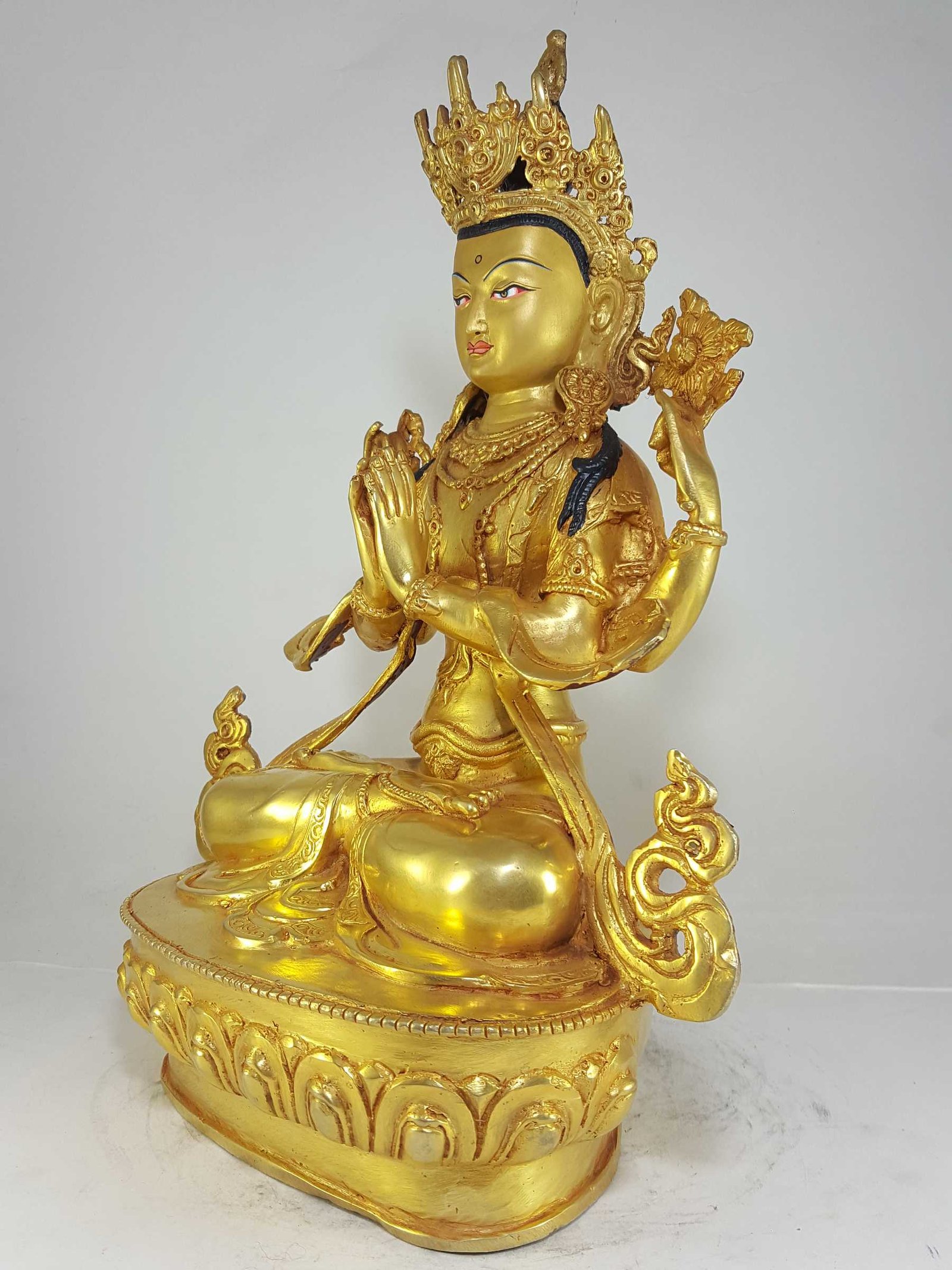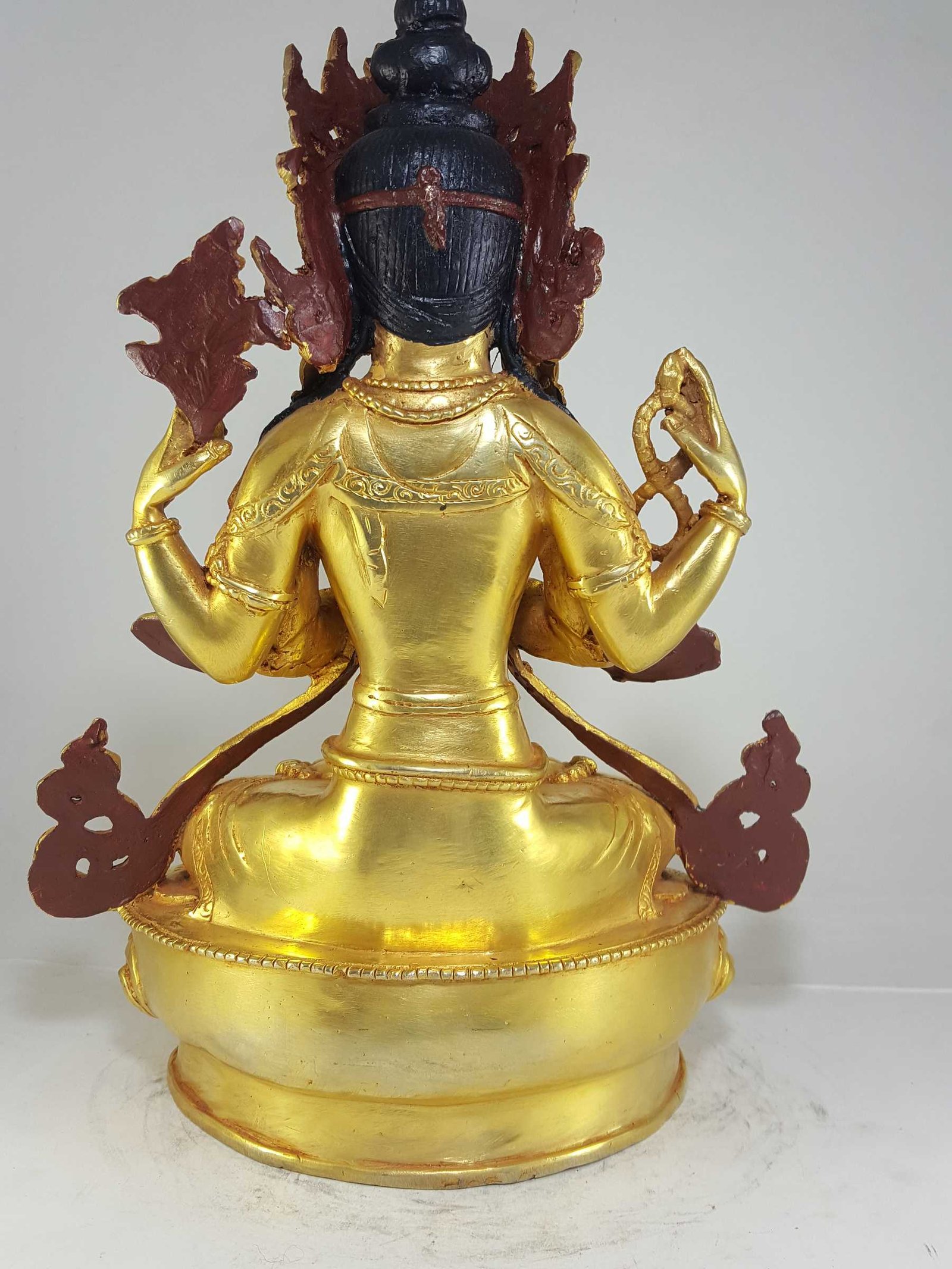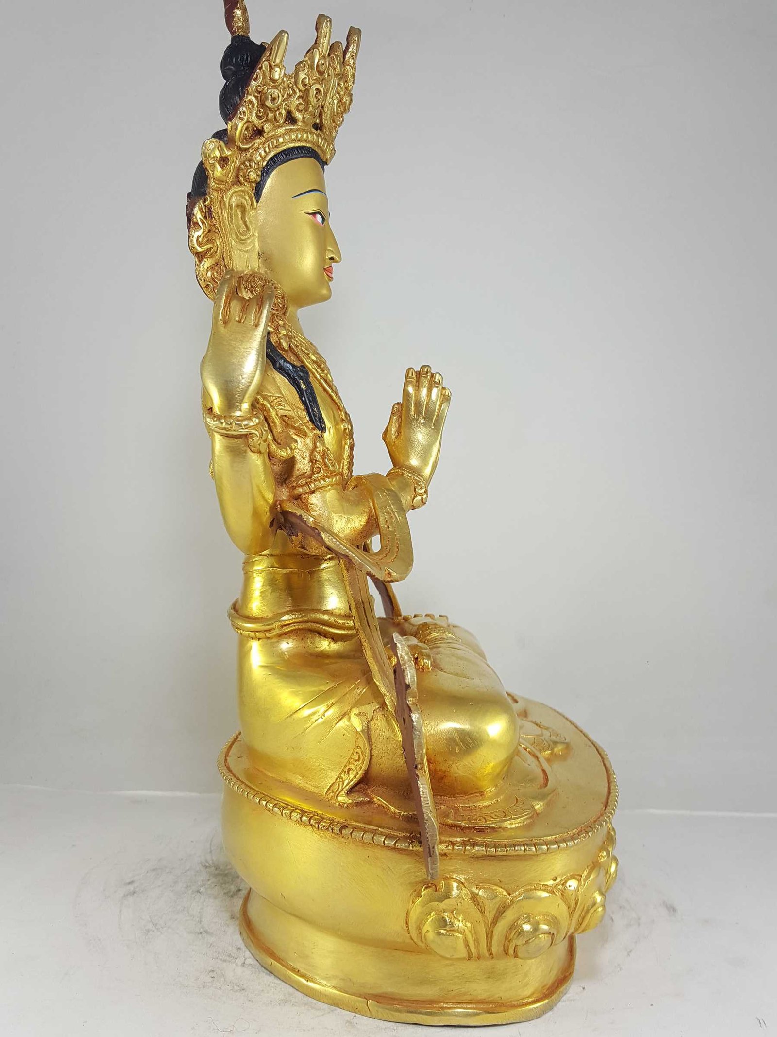 Statue of Chenrezig Full Fire Gold Plated and Painted Face , Bodhisattva of Compassion, Protector of All Beings