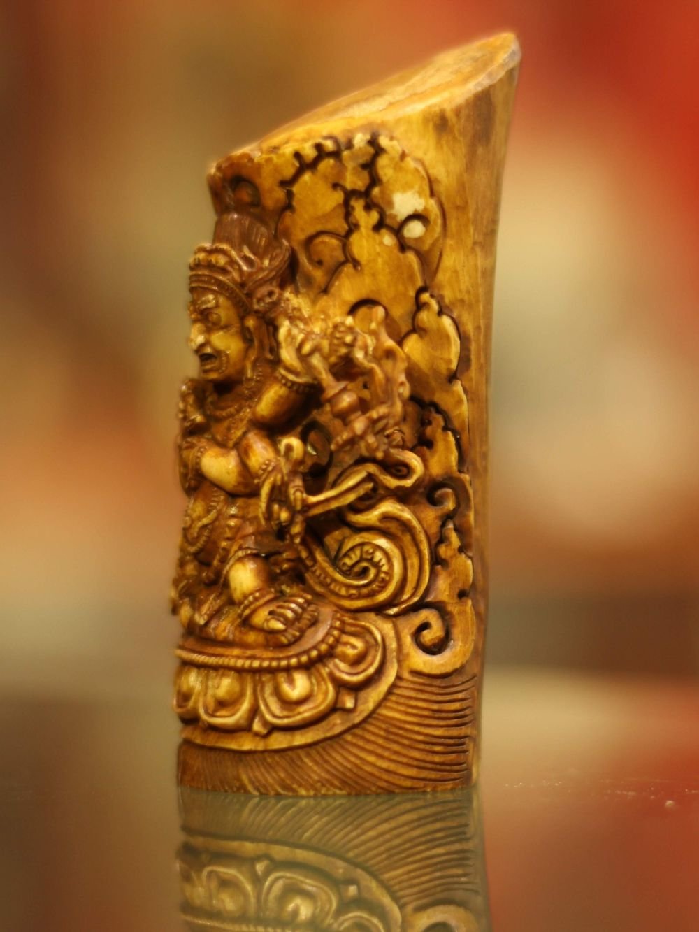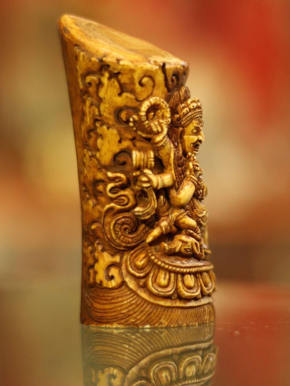 Real Bone Carved Six Arms Black Mahakala Six Arms , Fierce protector, destroys obstacles, guards the Dharma