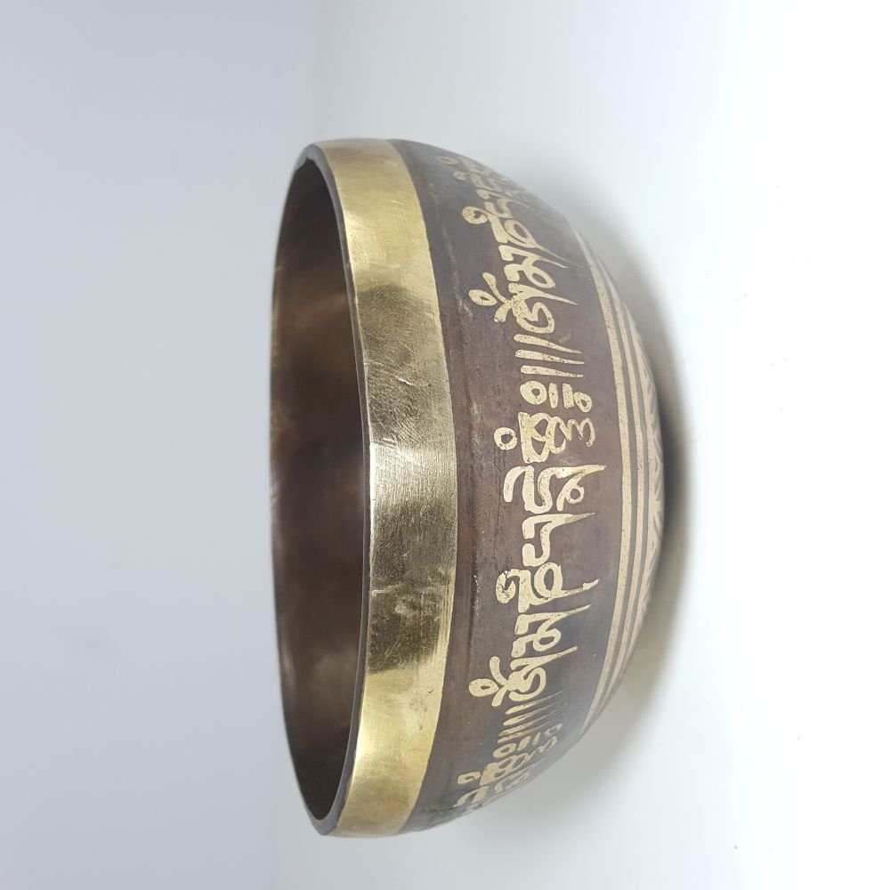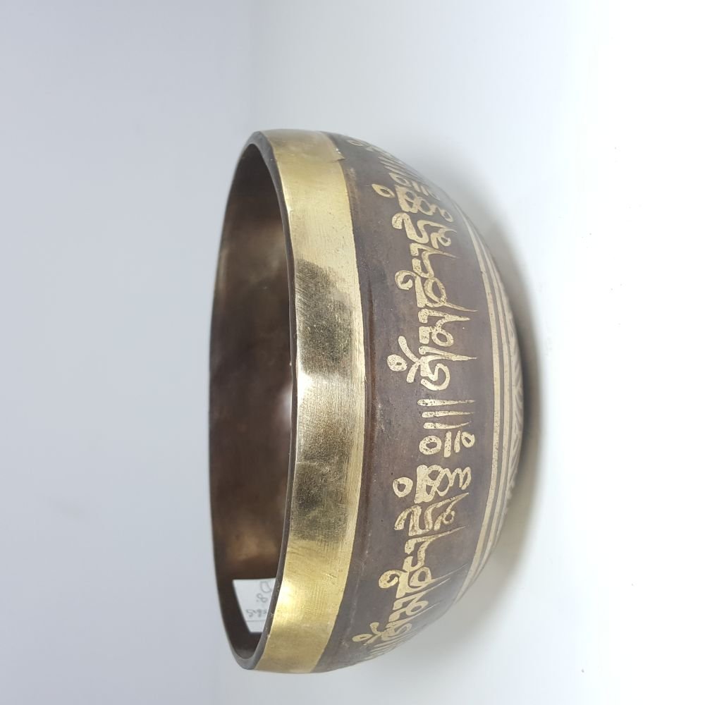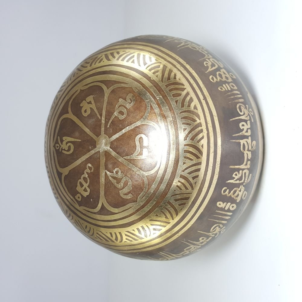 Stock NO : 23 Handmade Beaten Therapy Bowl with Etching and Carving D, Sacral Chakra, Select Accessories , A bowl used for meditation and healing, producing a soothing sound that promotes relaxation and mindfulness