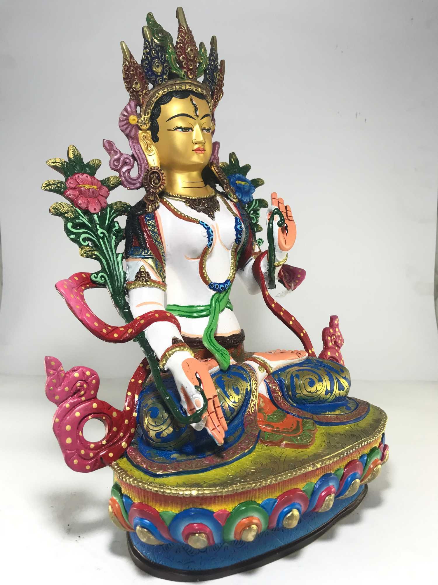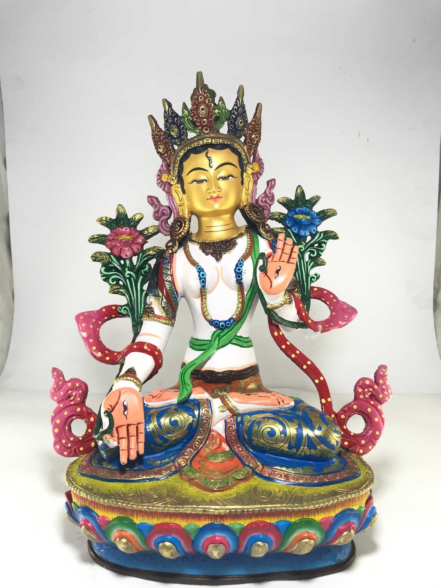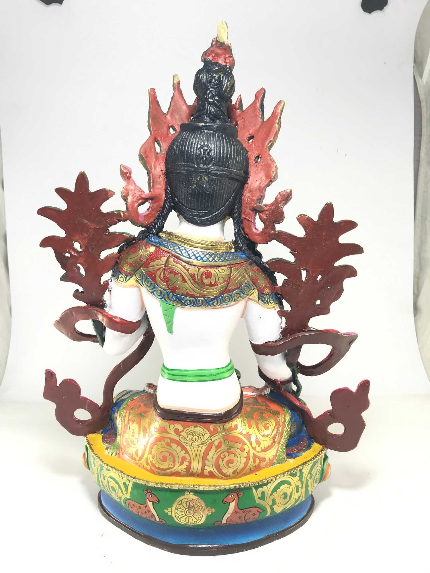 Statue of White Tara Gold Plated and Traditional Color Finishing , Goddess of longevity, healing, and serene compassion