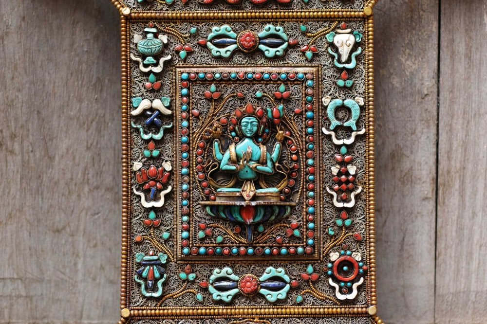 The art of creating these metal or wooden wall hangings is considered a sacred tradition in Tibetan Buddhist culture, and it is often passed down from generation to generation. The creation process can take many months or even years, as each detail is carefully crafted and the colors are meticulously applied. These wall hangings are considered to be sacred objects and are used for meditation, worship, and offerings.