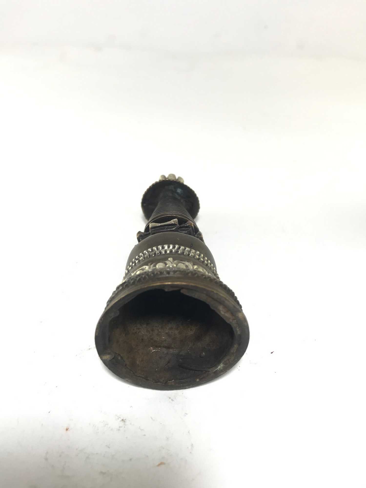 The Stupa features a captivating combination of partly silver plating and dark oxidation. This unique finishing technique combines the lustrous shine of silver with the rich, deep tones achieved through oxidation. In the process of creating this finish, selected areas of the Stupa are expertly silver-plated, creating a radiant and reflective surface that catches the light. The remaining areas are intentionally oxidized, resulting in a darkened patina that adds depth and character to the piece. Read More