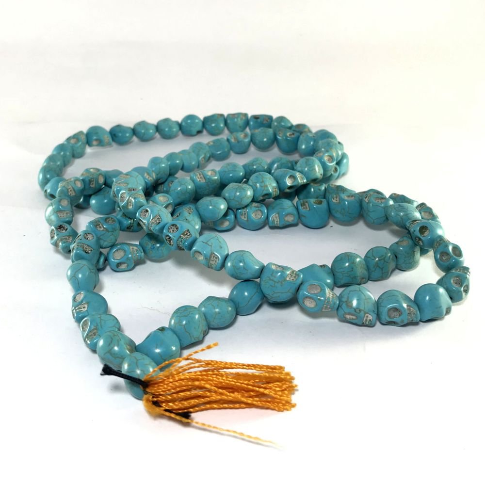 108 Turquoise Powder Skull Cast Bead, 13mm Prayer Bead Mala , Used for meditation and prayer, symbolizing devotion and spiritual progress