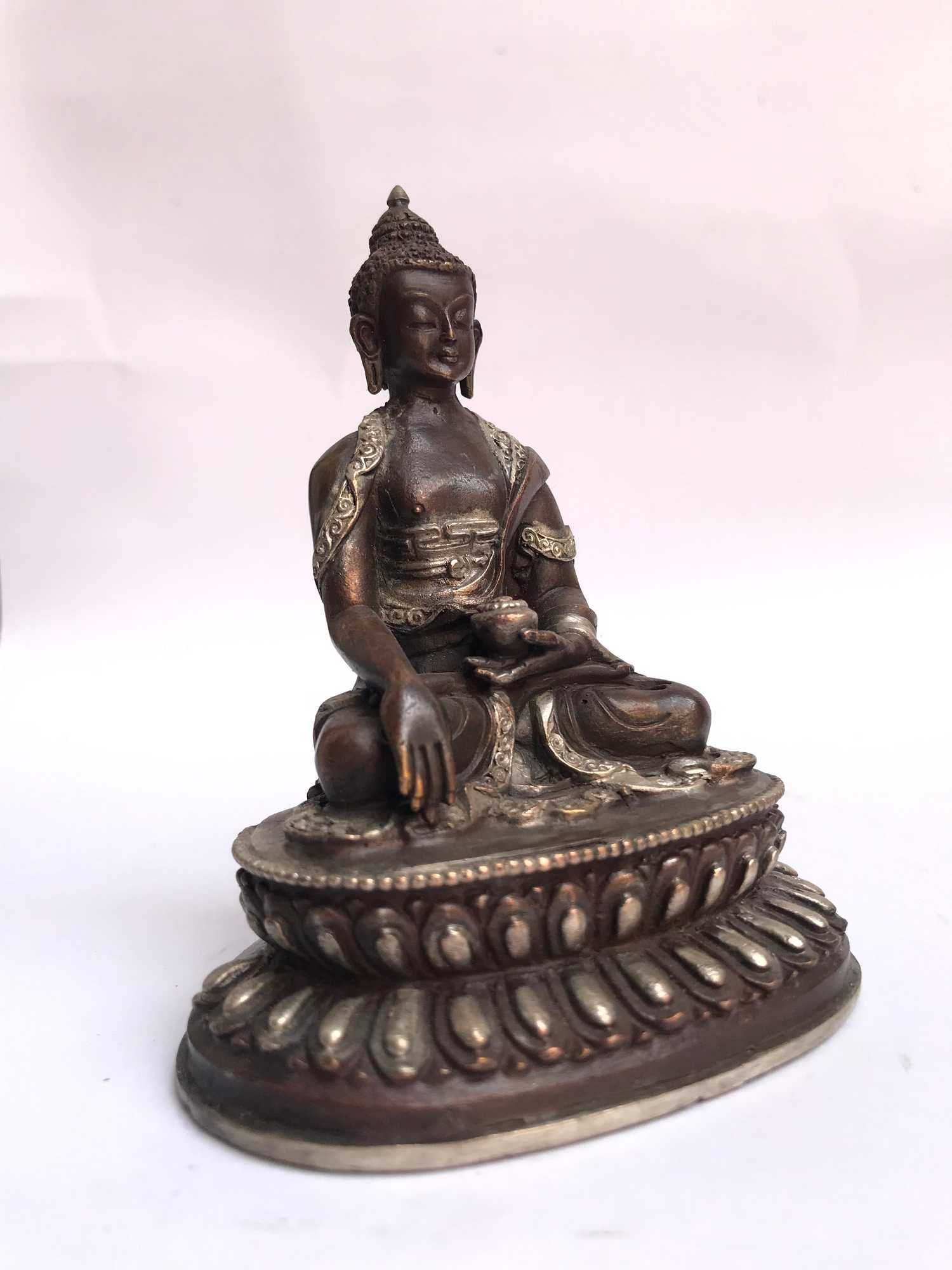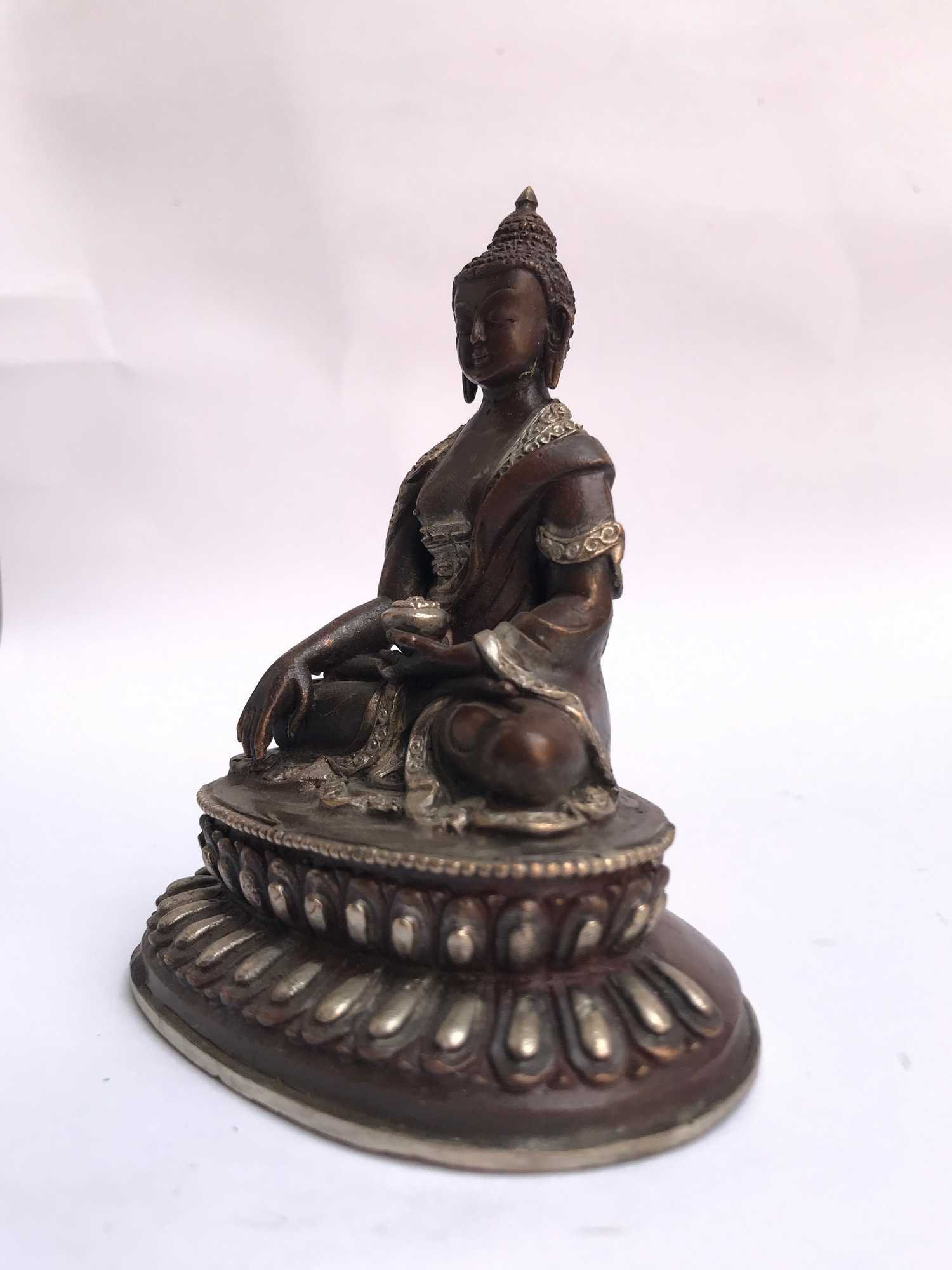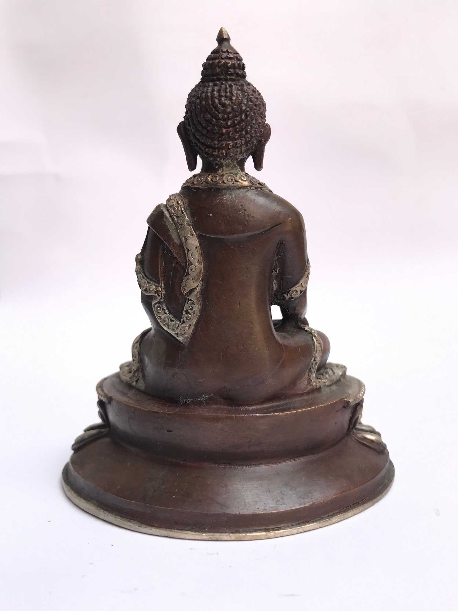The Shakyamuni Buddha features a captivating combination of partly silver plating and dark oxidation. This unique finishing technique combines the lustrous shine of silver with the rich, deep tones achieved through oxidation. In the process of creating this finish, selected areas of the Shakyamuni Buddha are expertly silver-plated, creating a radiant and reflective surface that catches the light. The remaining areas are intentionally oxidized, resulting in a darkened patina that adds depth and character to the piece. Read More