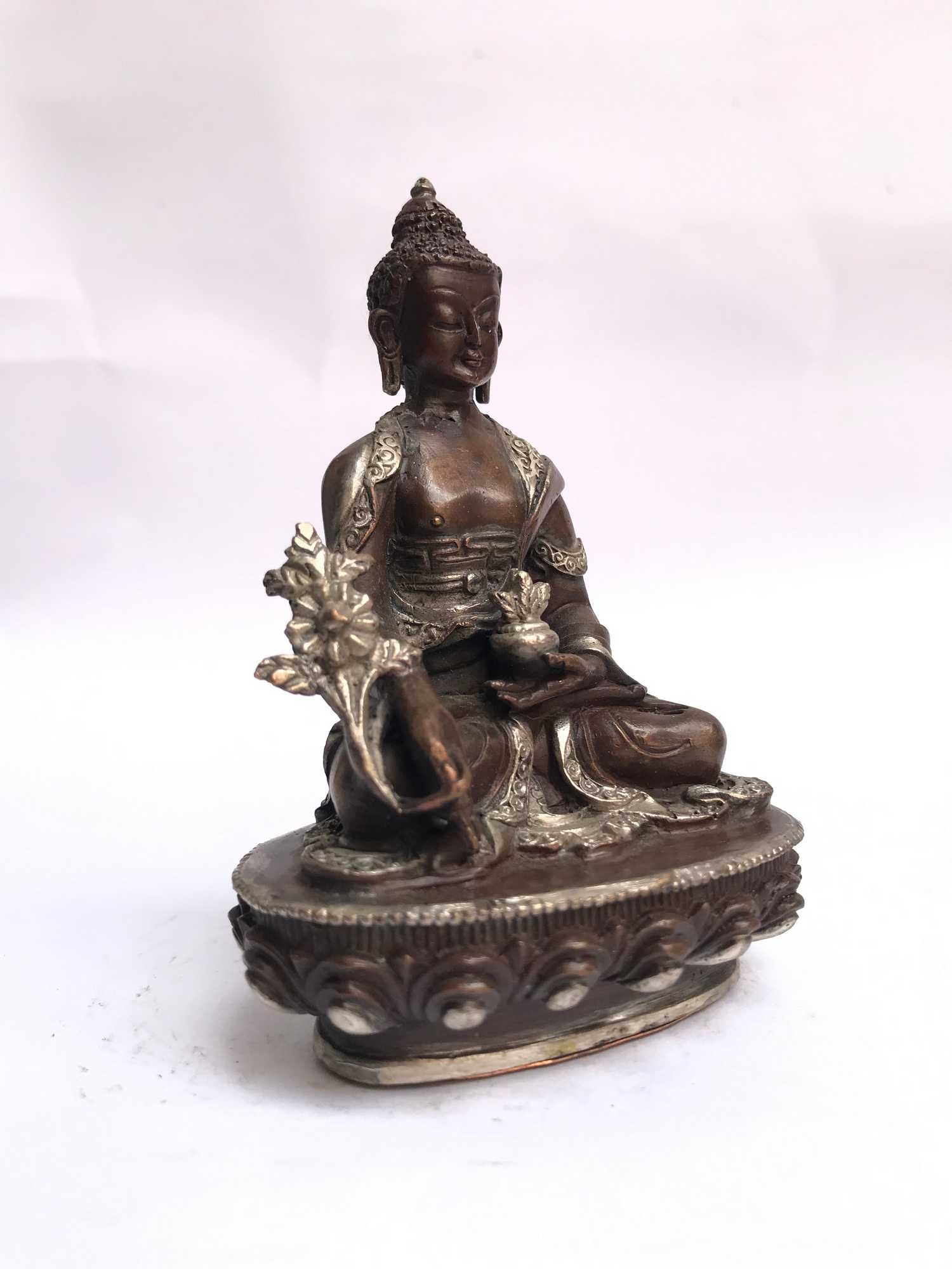Tibetan Statue of Medicine Buddha, Silver Plated Oxidized , Healer of physical and spiritual ailments, bringer of health and peace