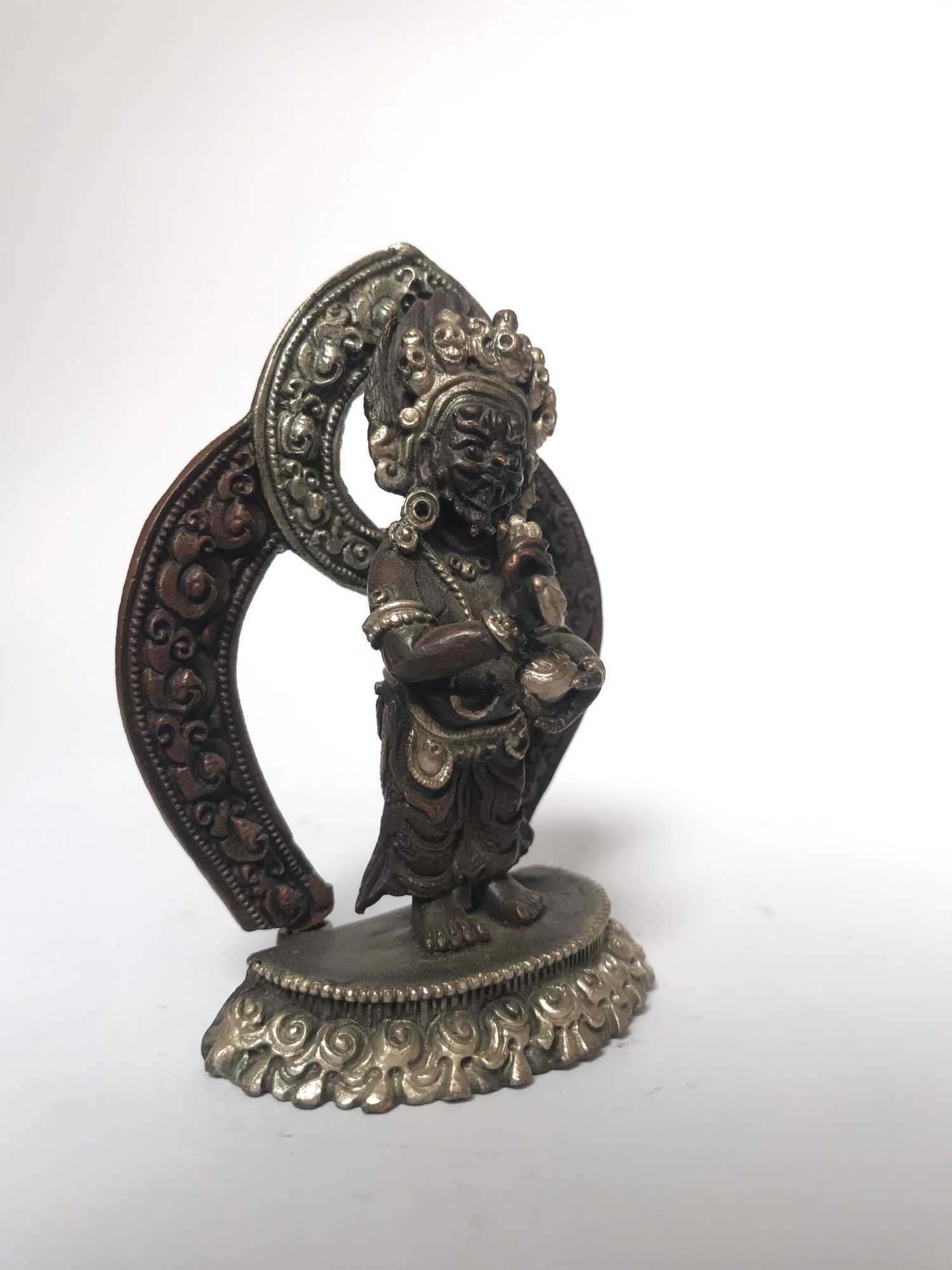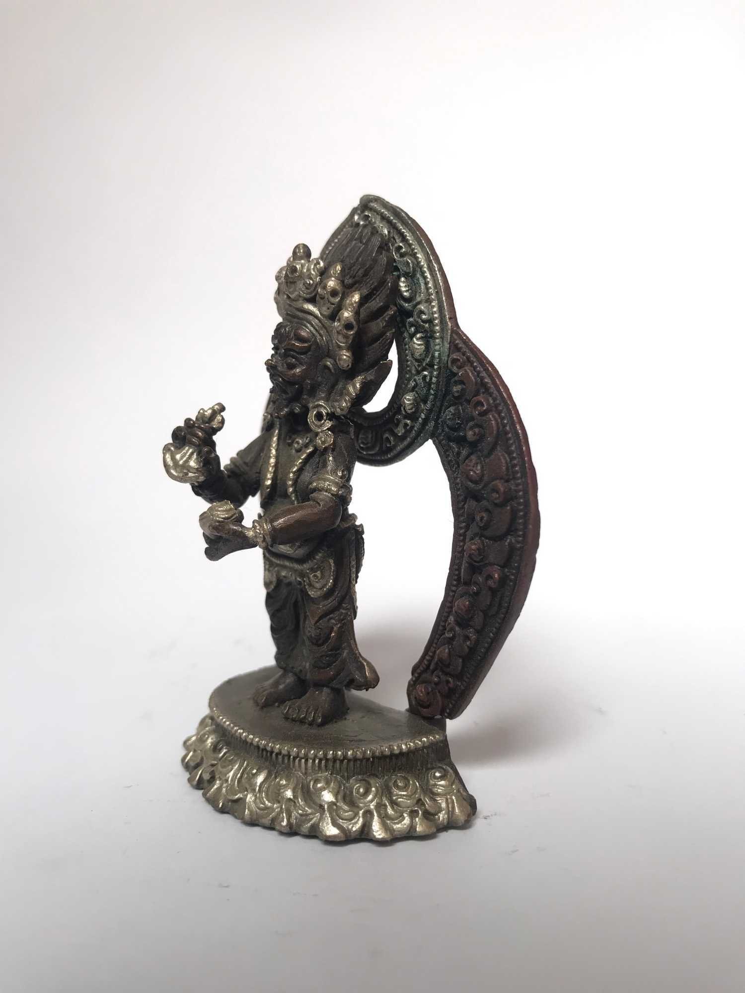 Tibetan Statue of Mahakala Two Arms, Silver Plated Oxidized , Two-armed protector, fierce and swift, removes obstacles and fear