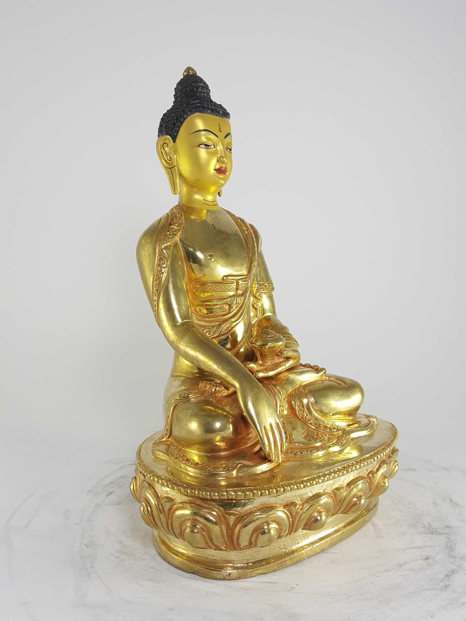 Tibetan Statue of Shakyamuni Buddha, Full Gold Plated, Painted Face , The Enlightened One and Teacher of Humanity