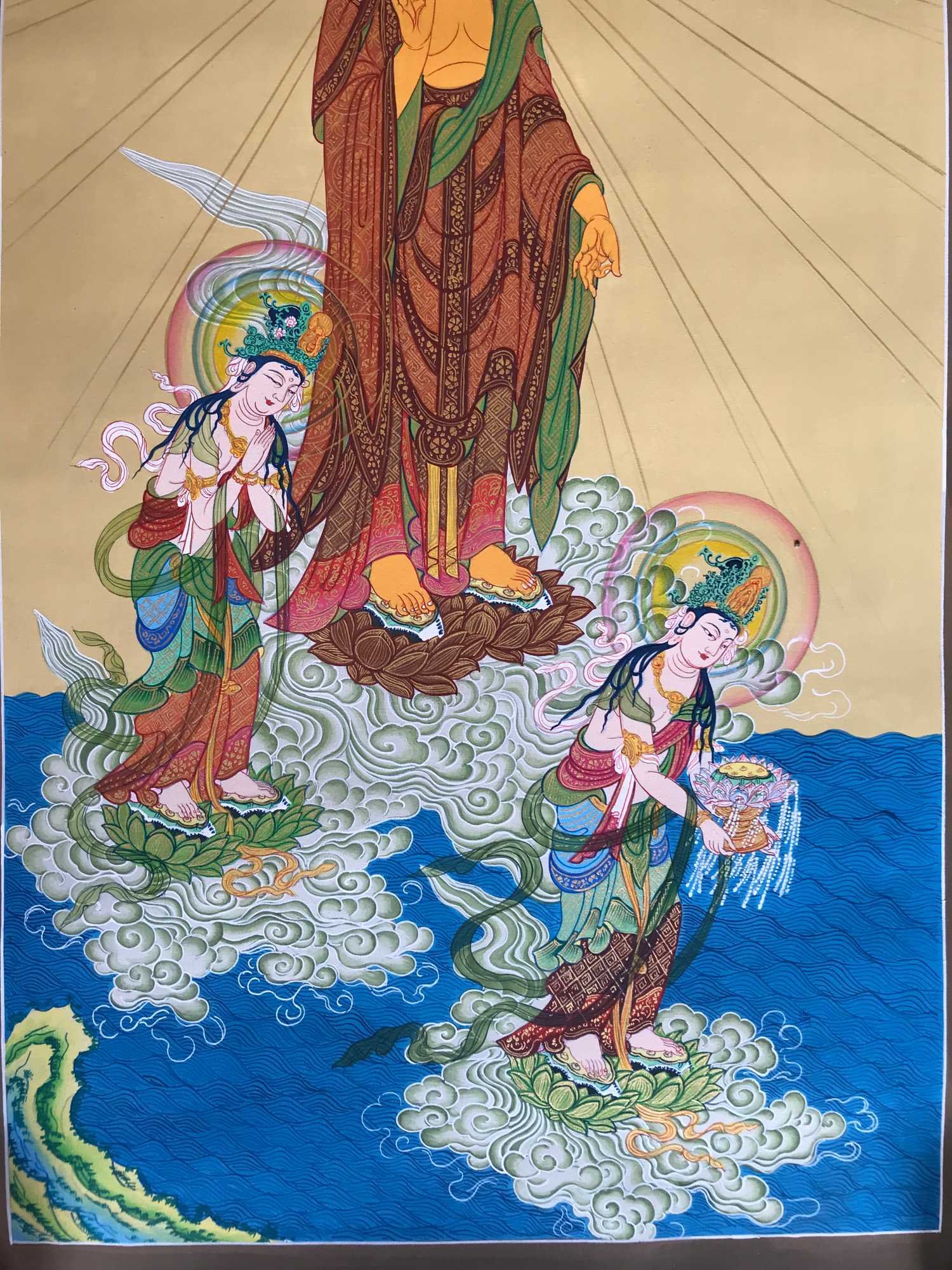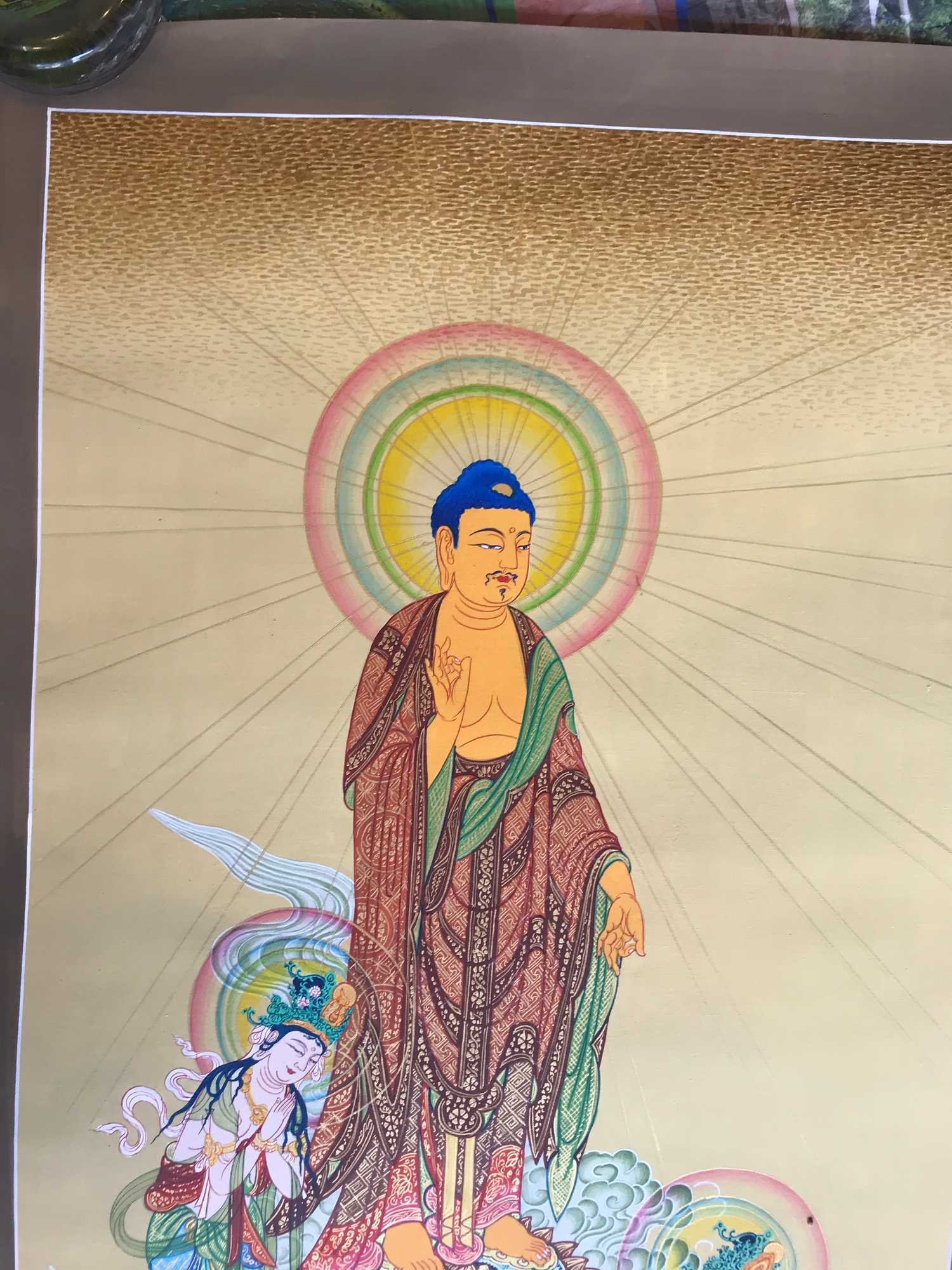 A thangka, also known as tangka, thanka, or tanka, is a vibrant and intricate Tibetan Buddhist painting that serves as a visual representation of spiritual teachings. Crafted with meticulous detail on cotton or silk appliqué, thangkas depict a wide range of subjects including Buddhist deities, sacred scenes, mandalas, and narrative stories. These sacred artworks are traditionally kept unframed and rolled up for storage, resembling ancient scrolls. To protect their delicate nature, thangkas are mounted on textile backings and often adorned with a silk cover on the front. Proper preservation in dry environments is crucial to maintain the integrity and longevity of the silk. Read More