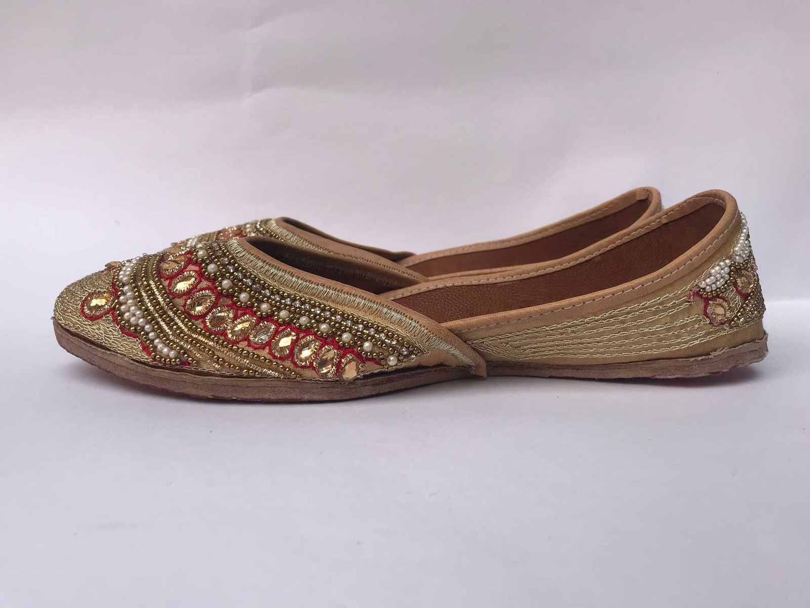 Jaipuri Jutti Sandals, with Leather and Bead Design |