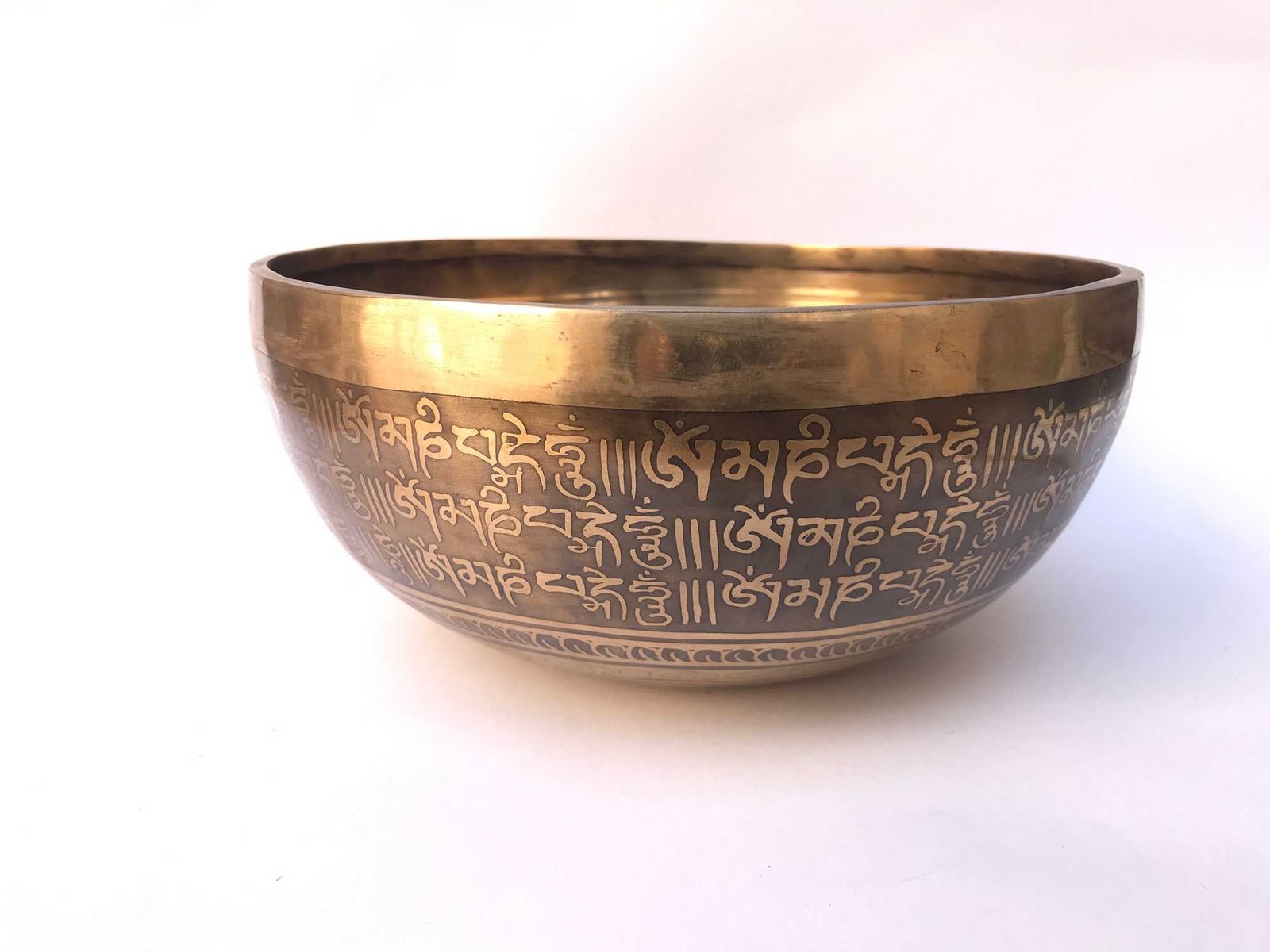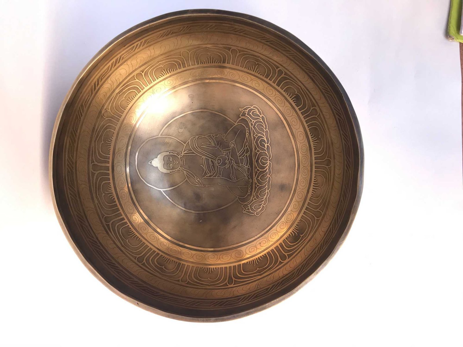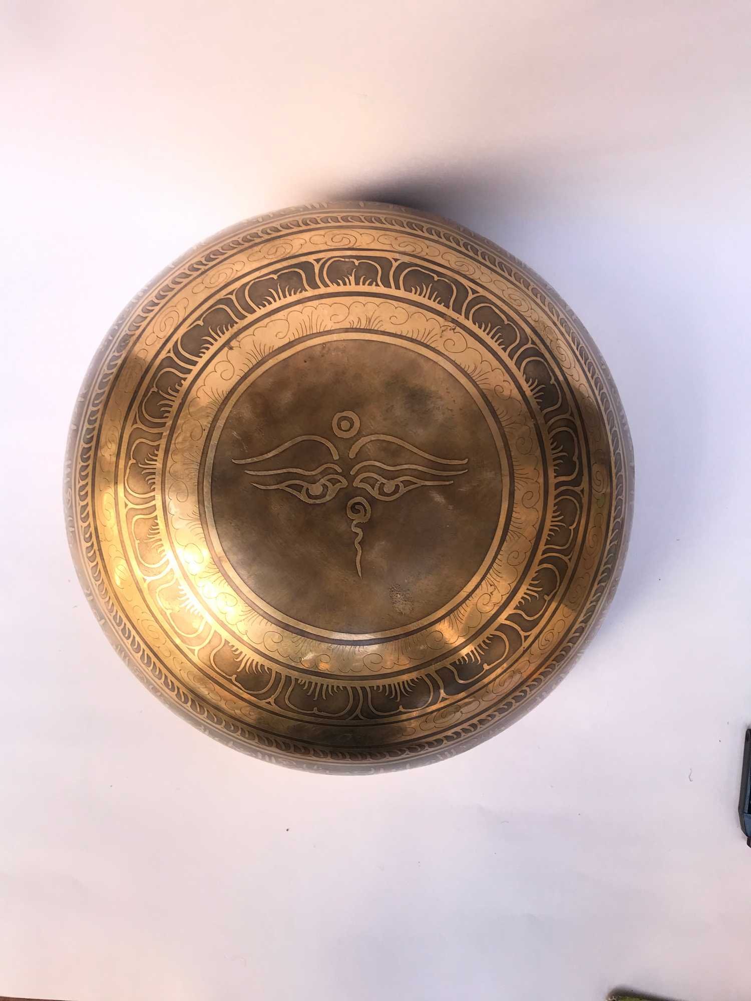 Hand Beaten Bronze Singing Bowl with Etching Carving, Select Accessories , A bowl used for meditation and healing, producing a soothing sound that promotes relaxation and mindfulness