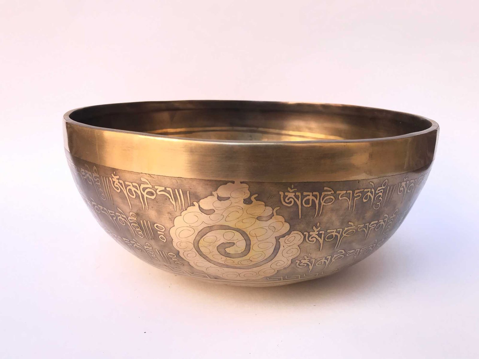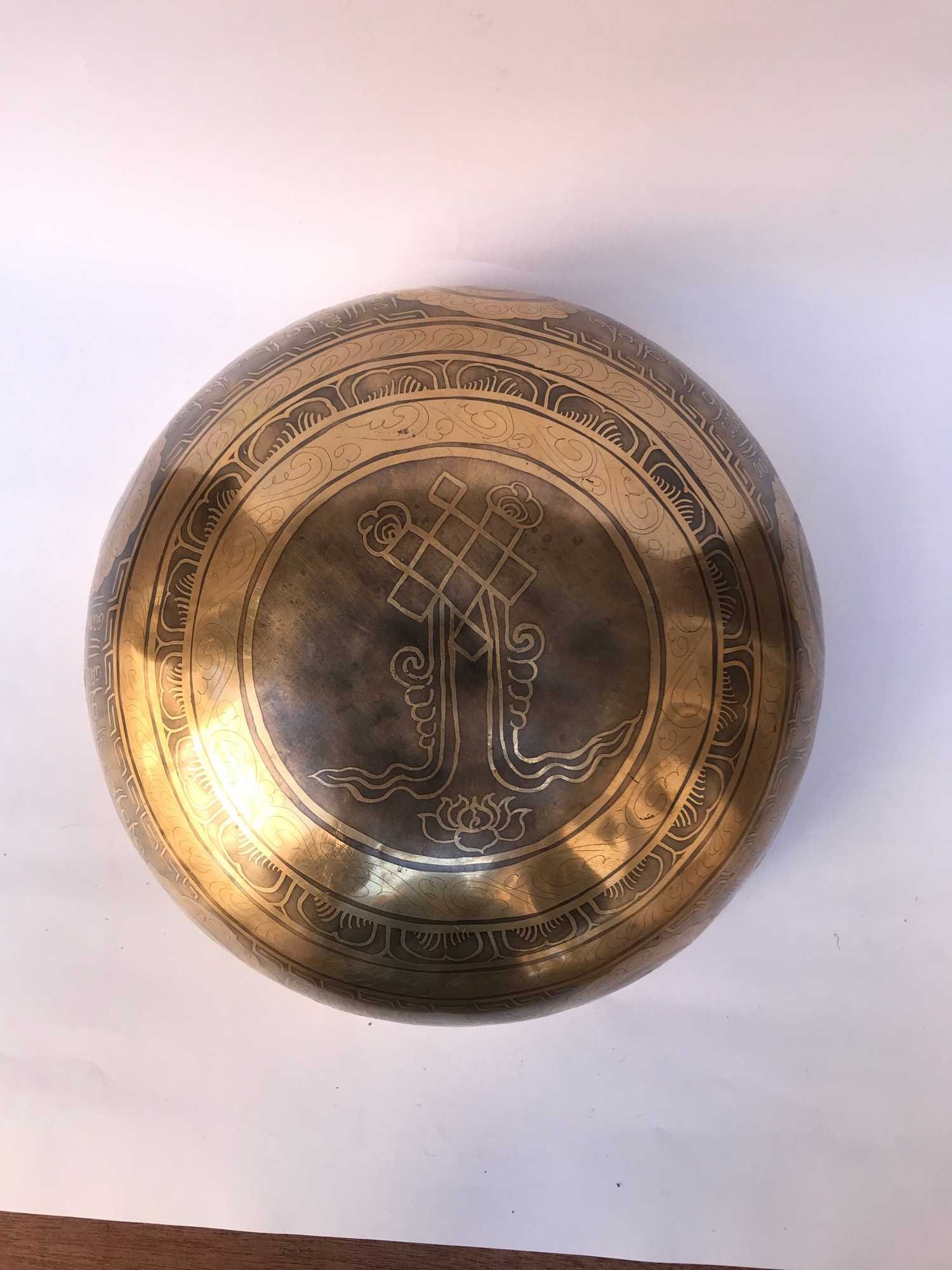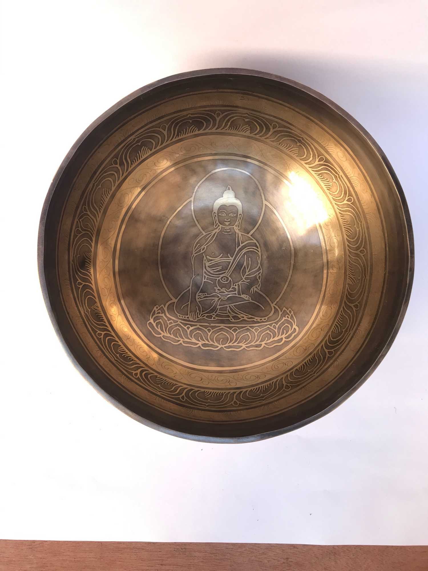 Hand Beaten Bronze Singing Bowl with Etching Carving, Select Accessories , A bowl used for meditation and healing, producing a soothing sound that promotes relaxation and mindfulness