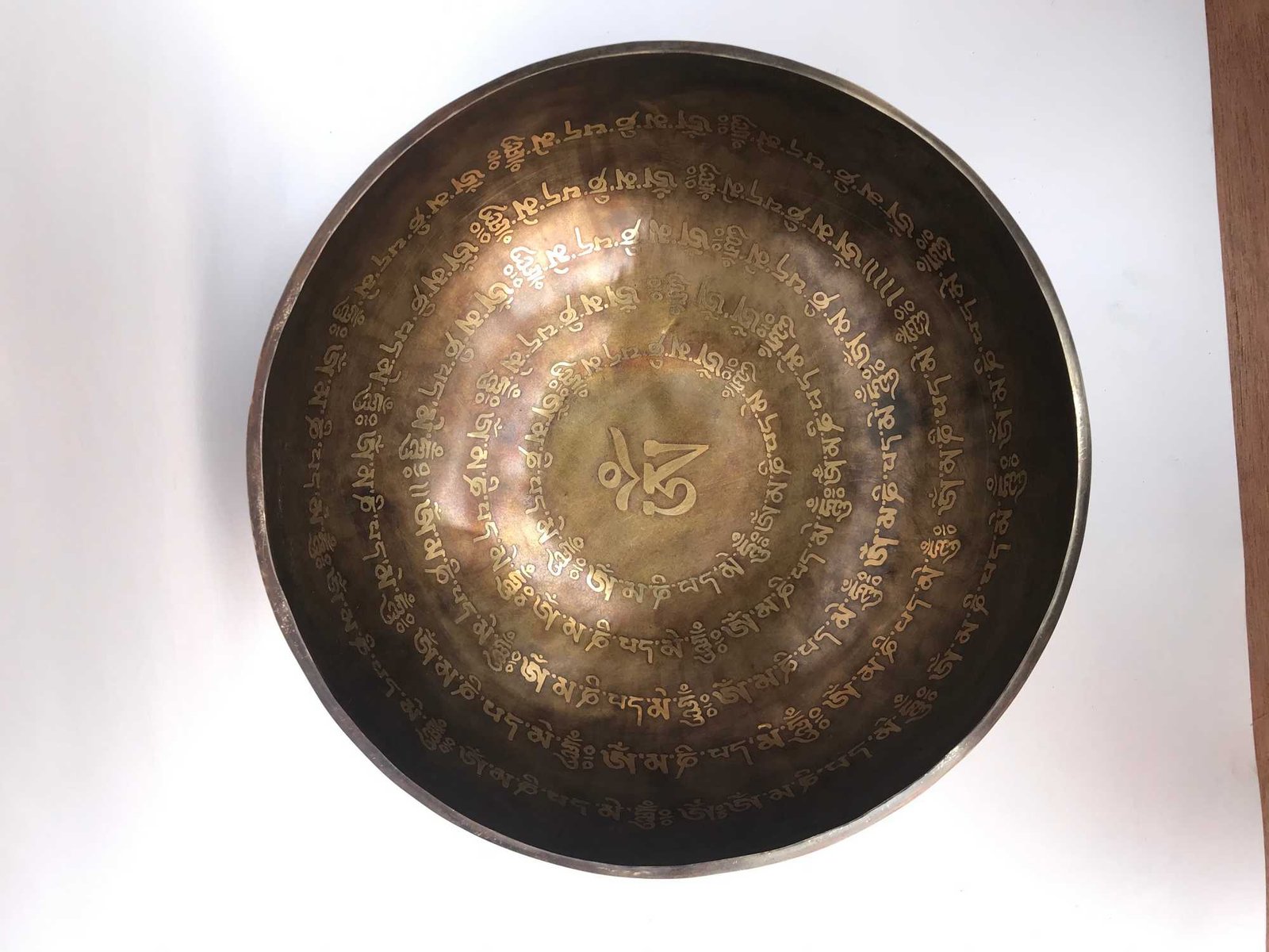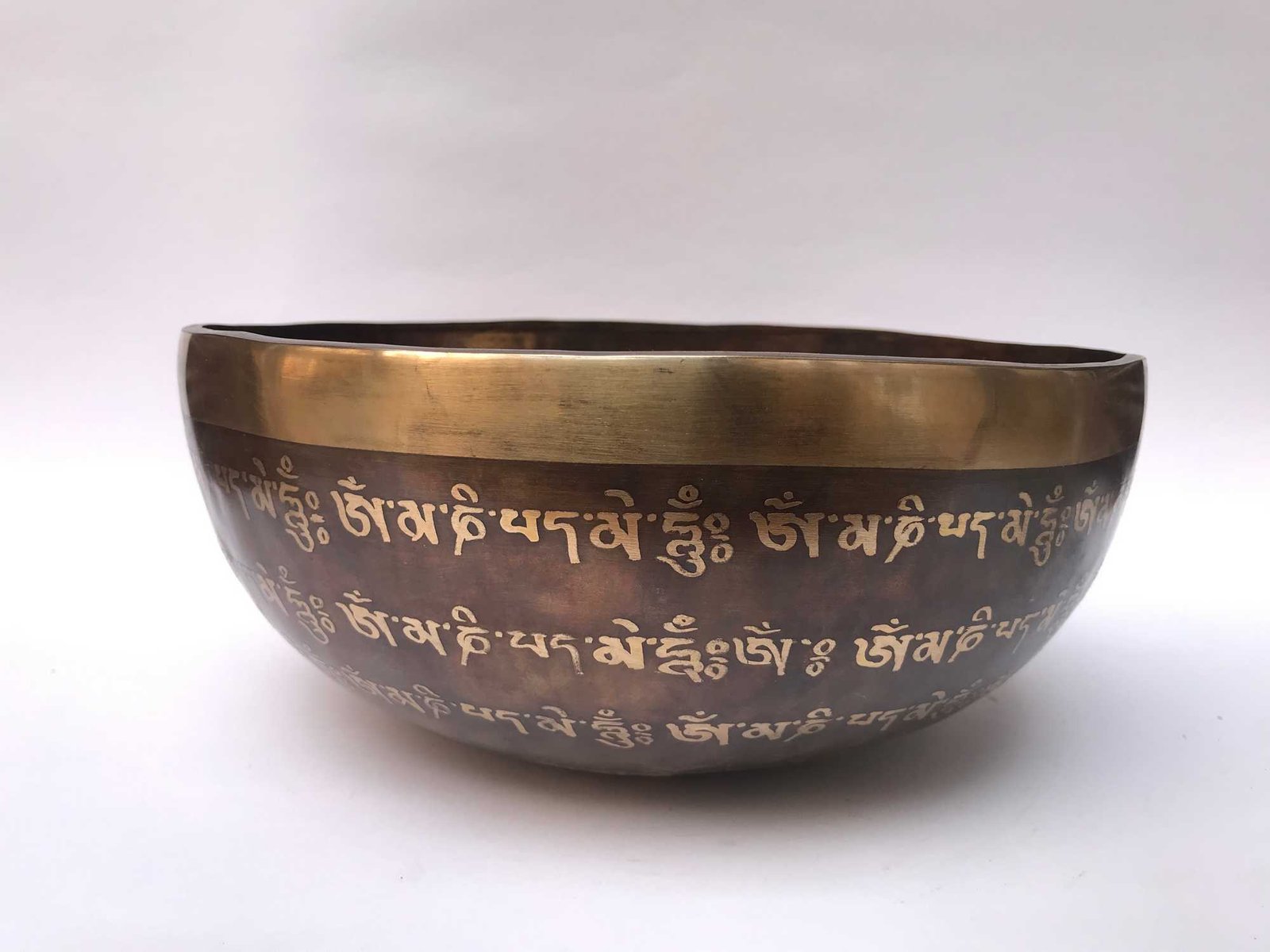 Hand Beaten Bronze Singing Bowl with Om Mani Padme Hum, Etching Carving, Select Accessories , A bowl used for meditation and healing, producing a soothing sound that promotes relaxation and mindfulness