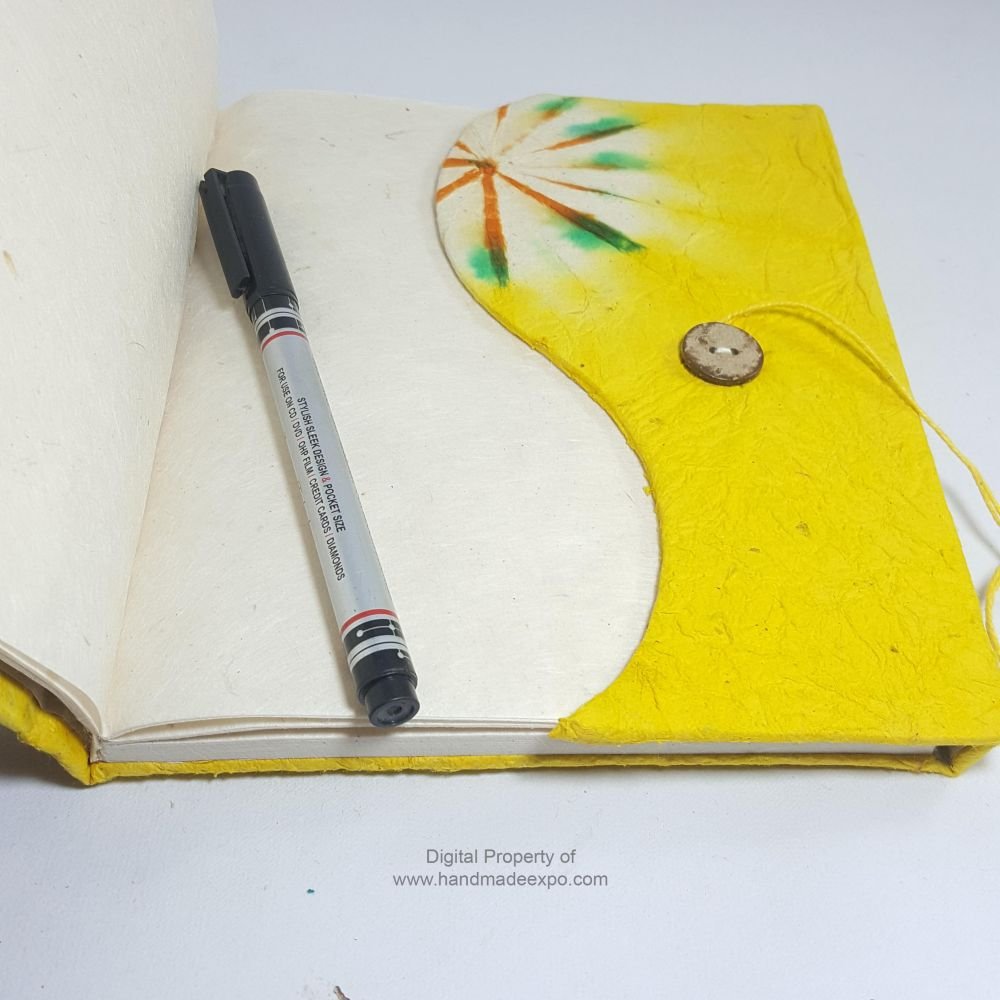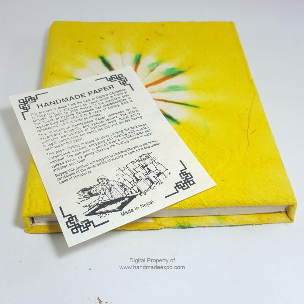 Folding Lokta Paper Medium Notebook, 45 Pages, Tie Dye Yellow, Veggie Dye |