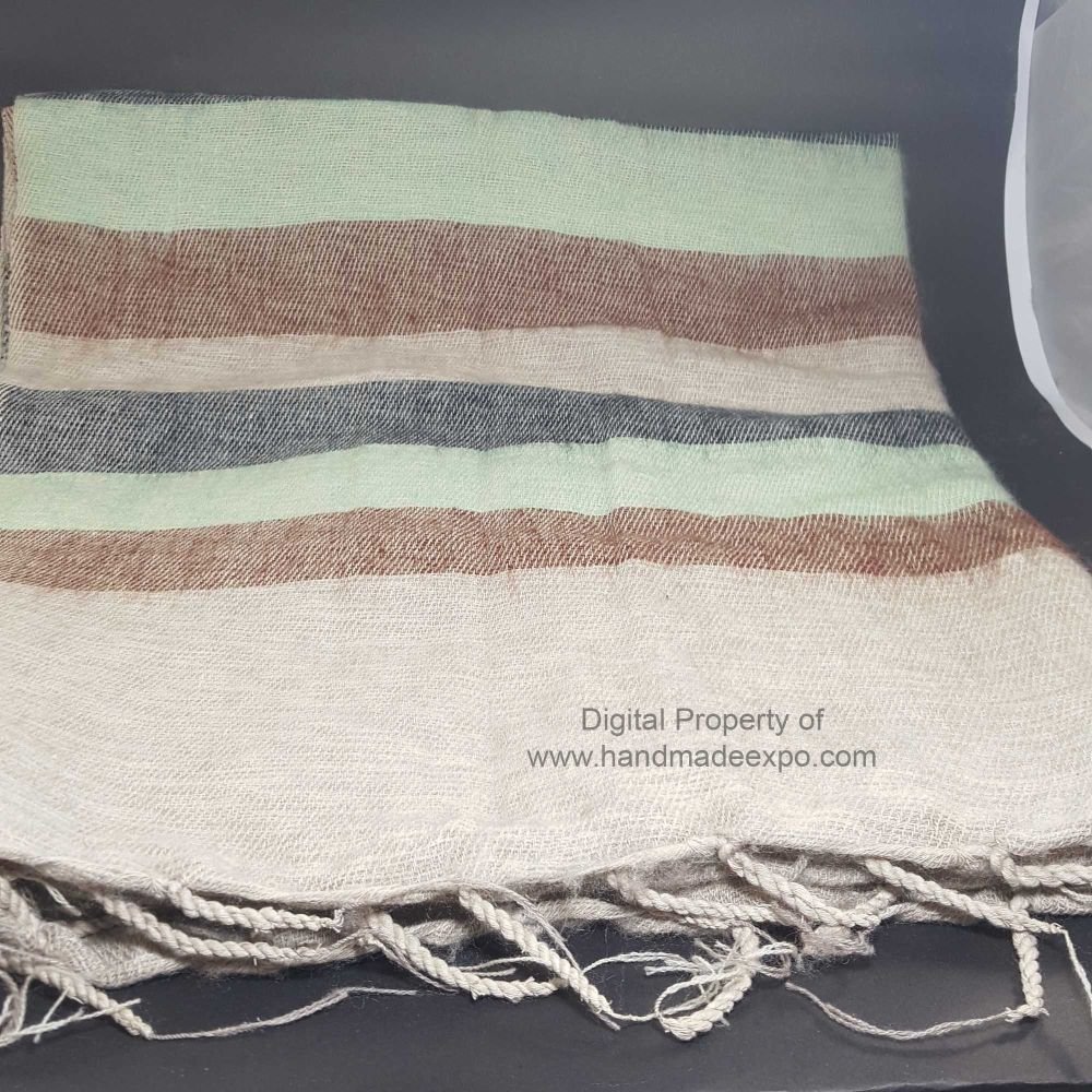 Yak Wool Shawl, Nepali Acrylic Hand Loom Shawl, Light Color Stripes |