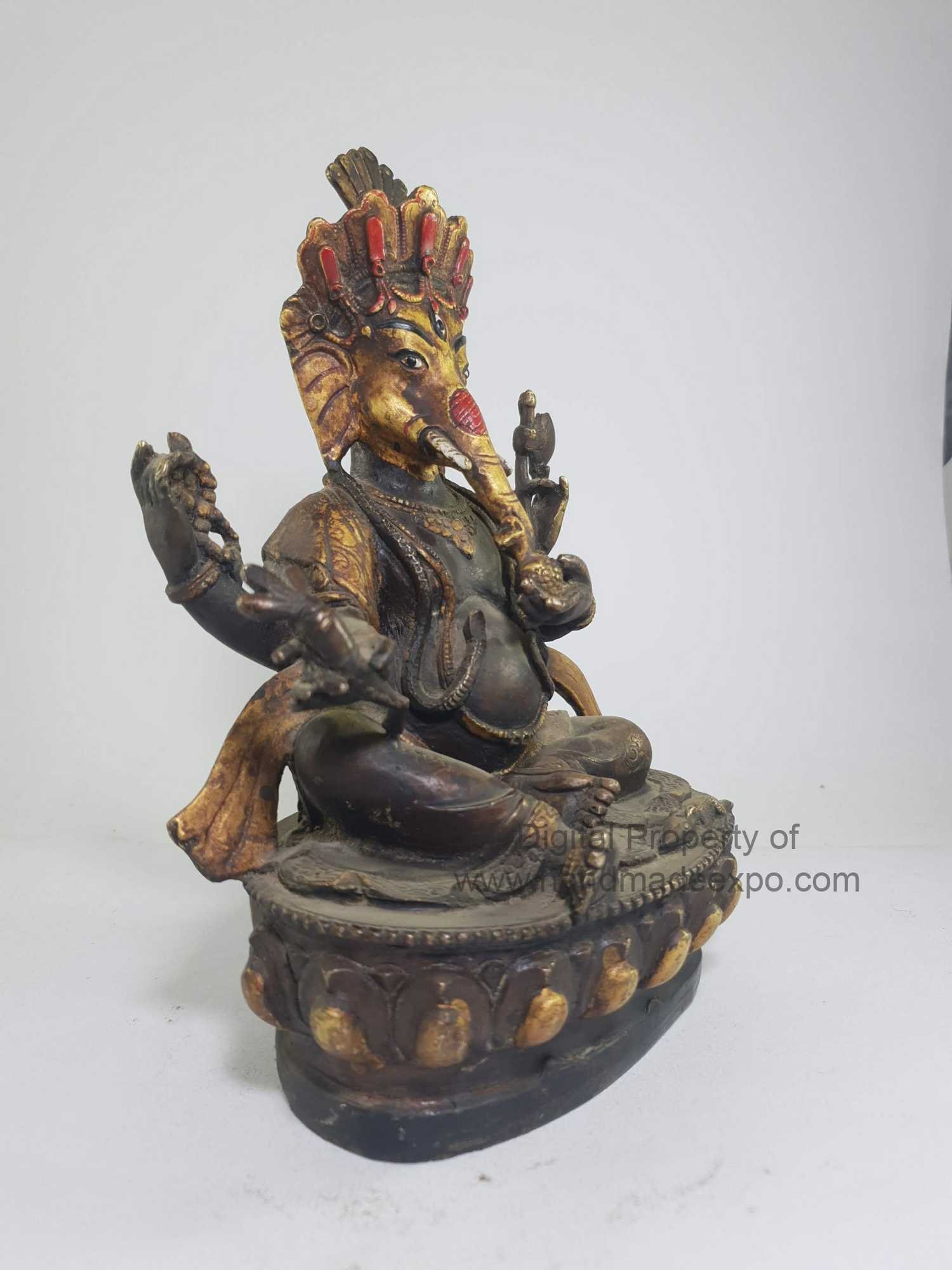 This Ganesh has been created using the sand casting system, also known as sand molding casting. This widely employed manufacturing process utilizes a sand mold to produce metal products and components in various sizes and shapes. Sand casting holds significant popularity in the industry, accounting for approximately 60% of all metal castings. The sand casting process involves six primary steps. First, a pattern or replica of the desired sculpture, in this case, Ganesh, is created using a material like wood or metal. The pattern is then placed in a flask, which is a box-like structure divided into two halves. The next step involves packing the flask tightly with specially formulated molding sand, creating a mold cavity that matches the shape of the pattern. The pattern is subsequently removed, leaving behind a negative impression of the sculpture within the sand mold. Read More