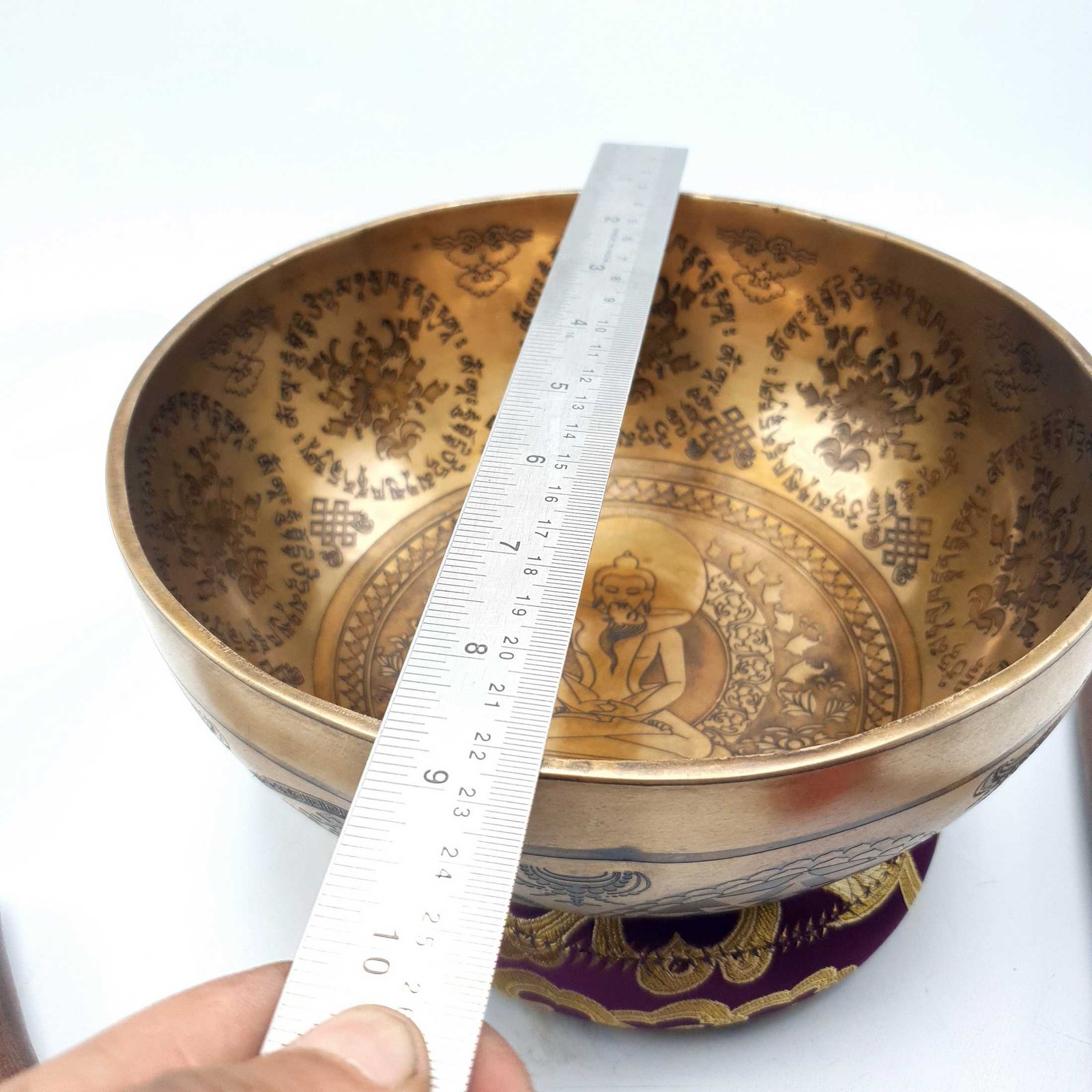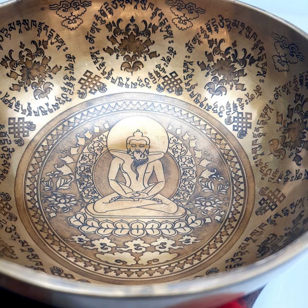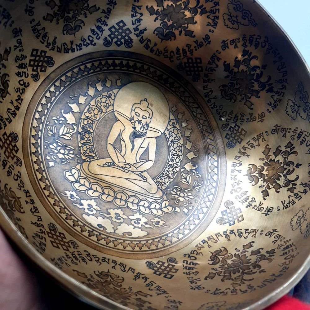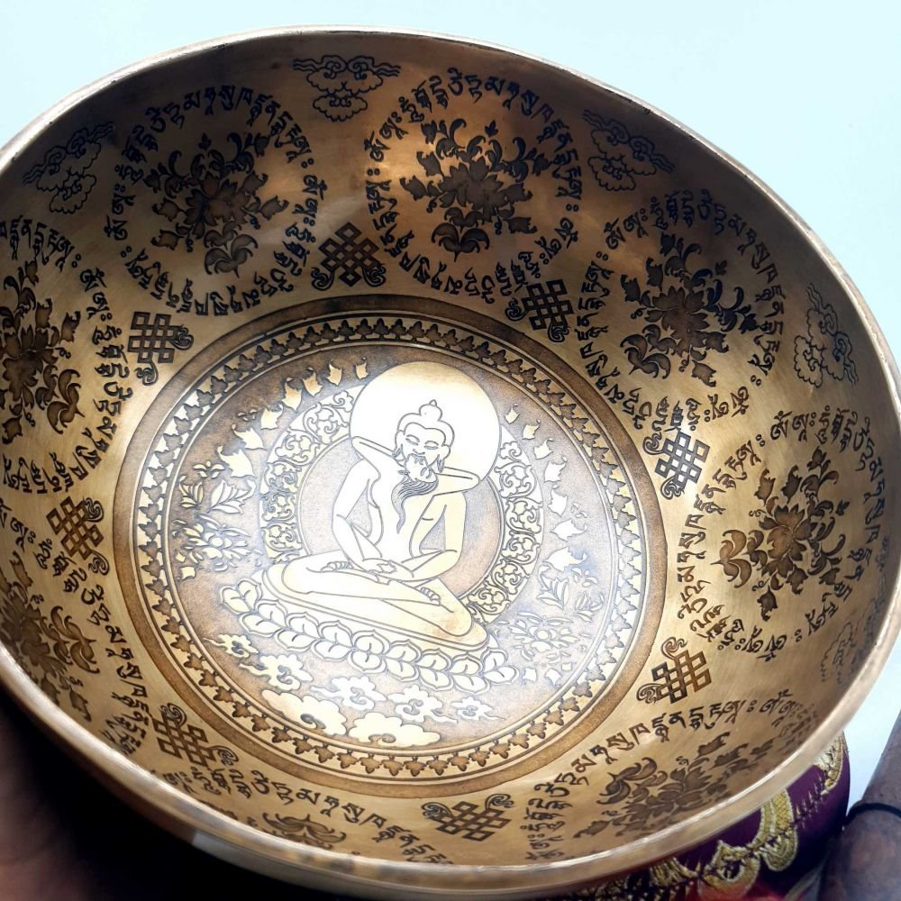 Fine Carving Singing Bowl Jambati, with Samantabhadra, Etching Carving, Select Accessories , A bowl used for meditation and healing, producing a soothing sound that promotes relaxation and mindfulness