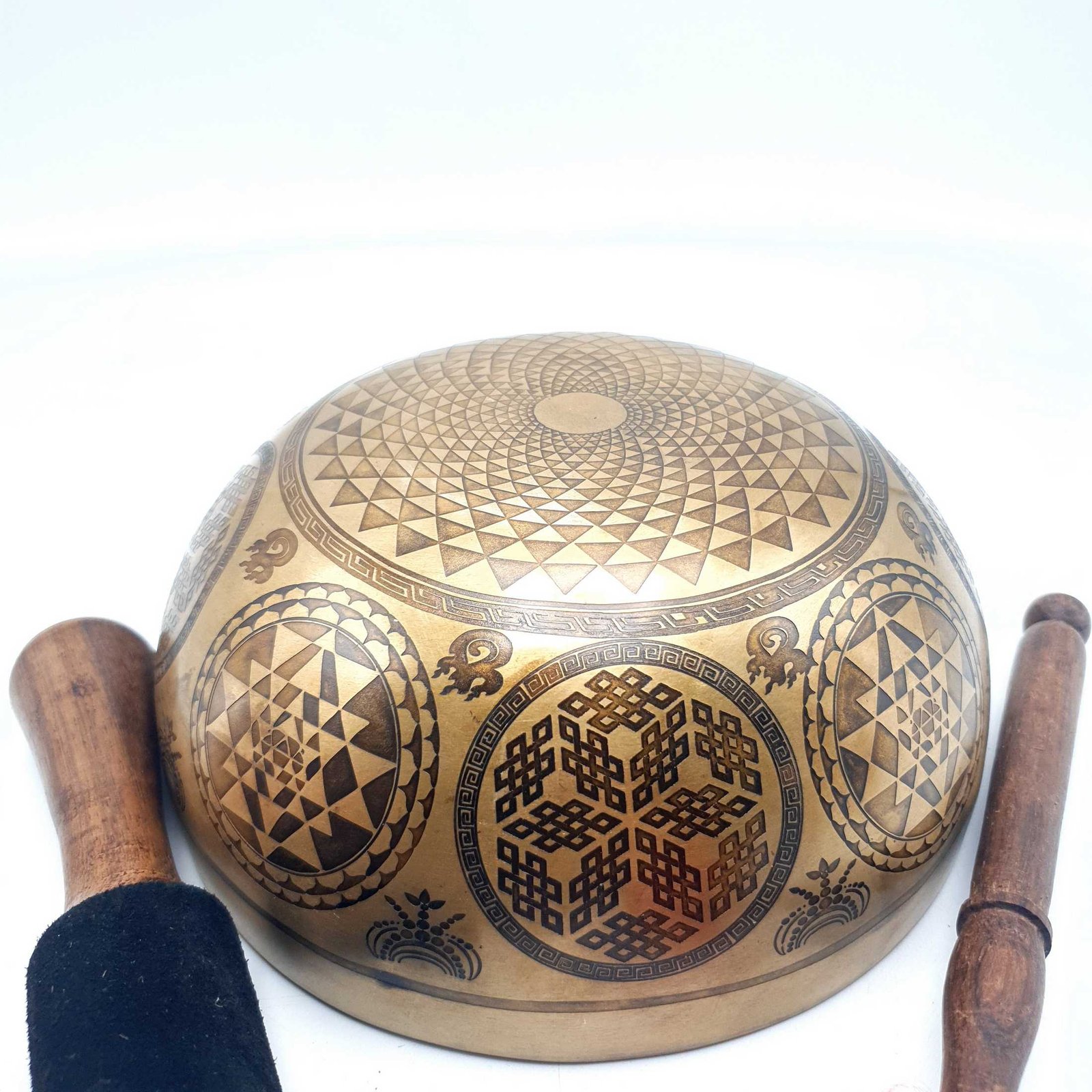Singing bowls , also known as Himalayan bowls , are used in yoga, music therapy, sound healing, and religious ceremonies. In the Buddhist tradition, they are played to signal the beginning and the end of silent meditation cycles. Tibetan bowls emit very pure tones, close to sine waves. Their sound is a synonym of purity for our ears. Like a bell, the tone is produced by striking the side of the bowl with a wooden mallet. By running the mallet around the bowl - only with slight pressure - a pure tone will eventually rise. When this happens, the bowl is said to sing - hence its name. Read More
