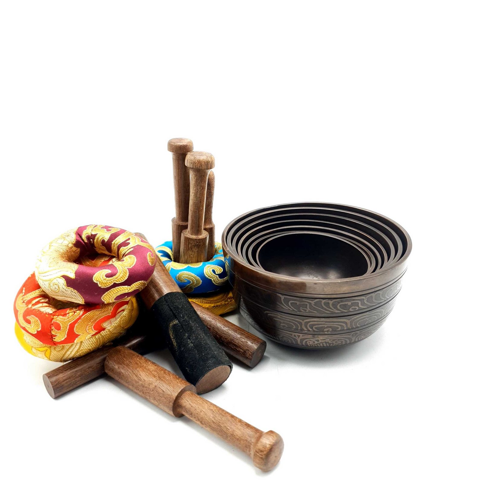7 Chakra Set, Singing Bowl Set, Bronze, Oxidized, Select Accessories |
