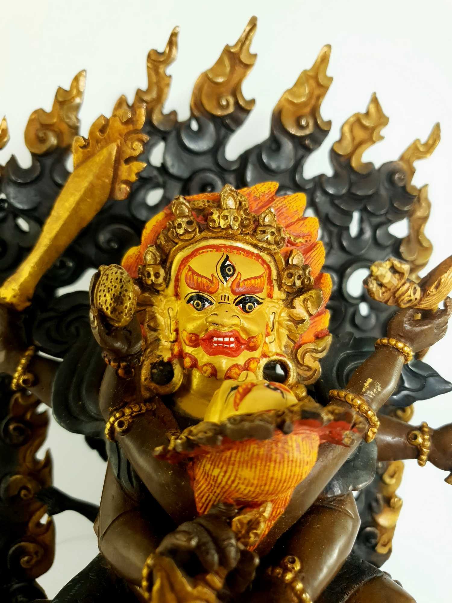 The face of Marutse is painted with gold to enhance its significant features, particularly the eyes, and lips. This detailed painting is essential as it brings forth the crucial attributes of the expression of eyes and lips that metal carving alone cannot capture.