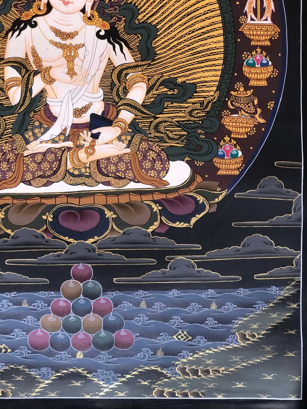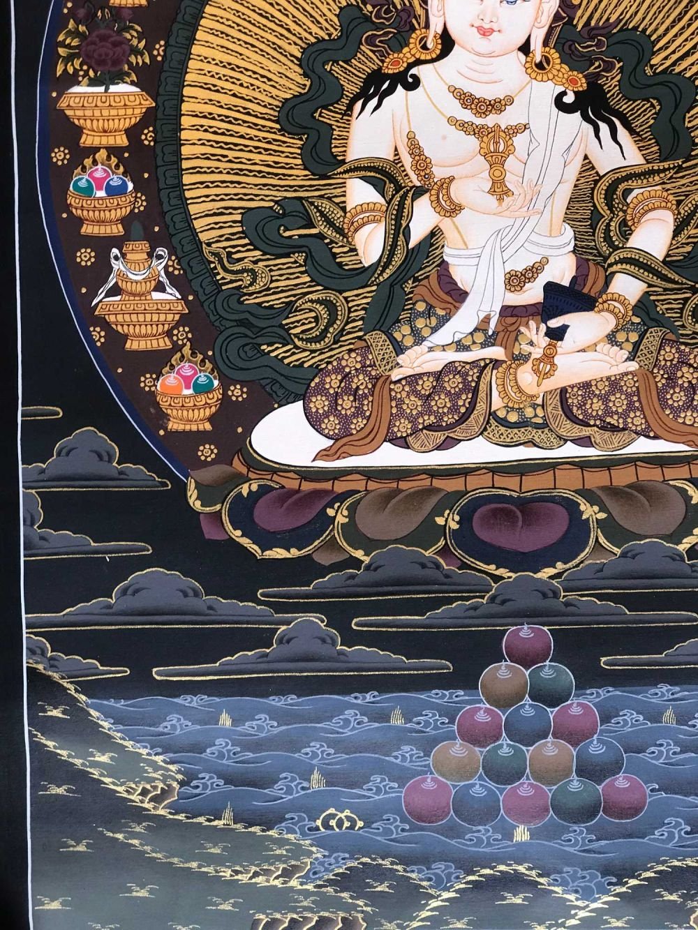 Tibetan Thangka of Vajrasattva , Purifier of karma, embodying purity and enlightenment