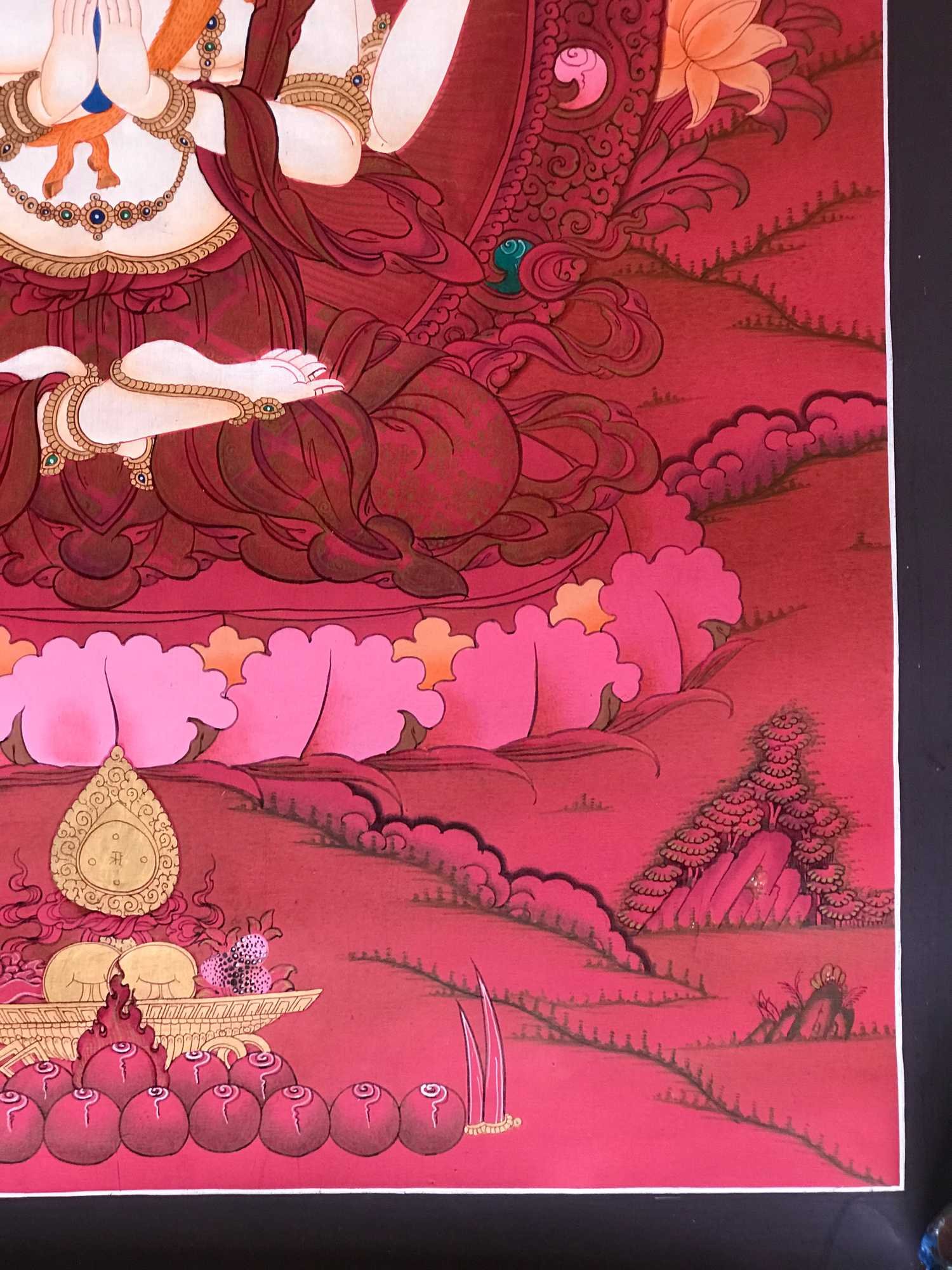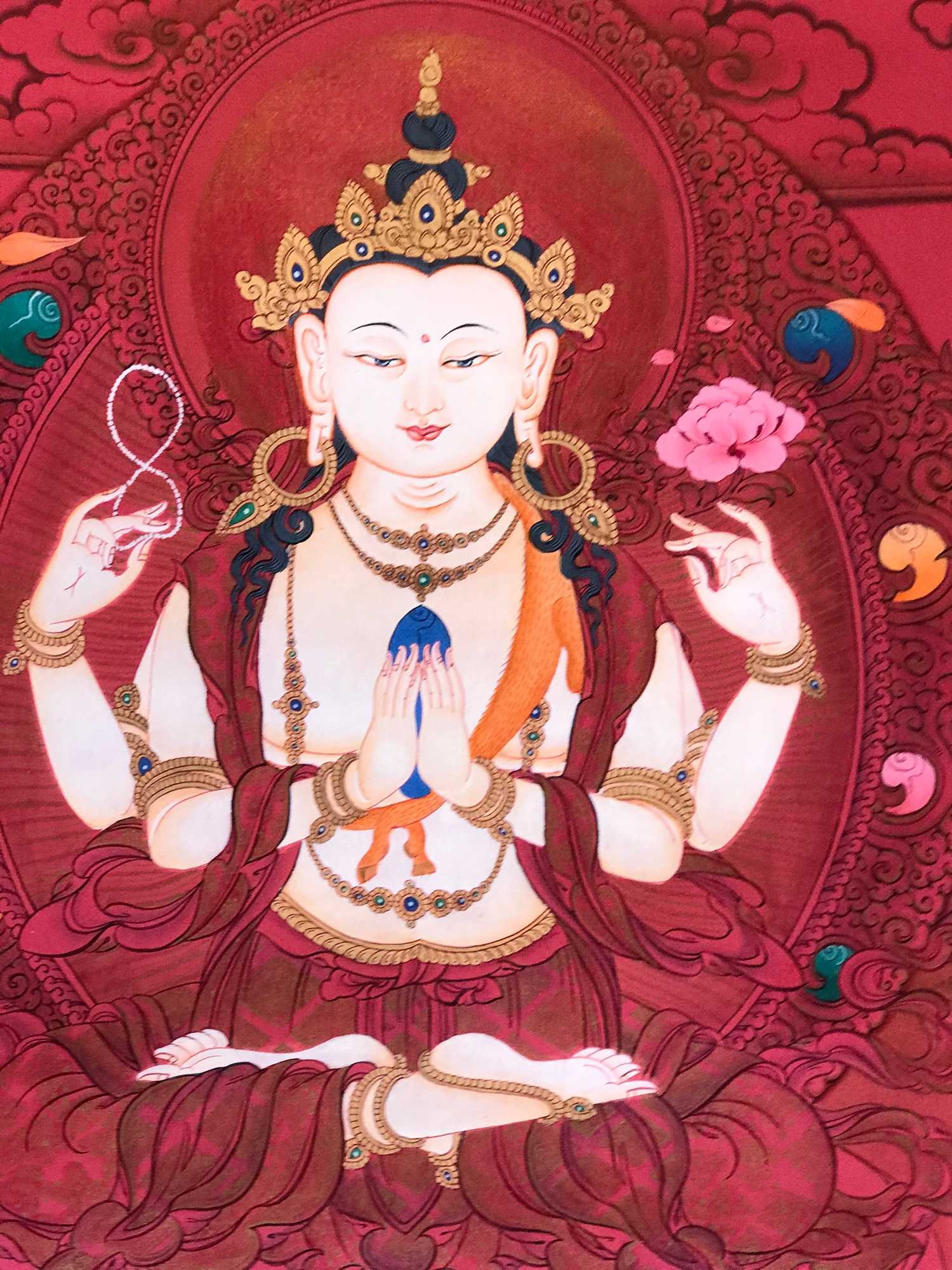 Tibetan Thangka of Chenrezig , Bodhisattva of Compassion, Protector of All Beings