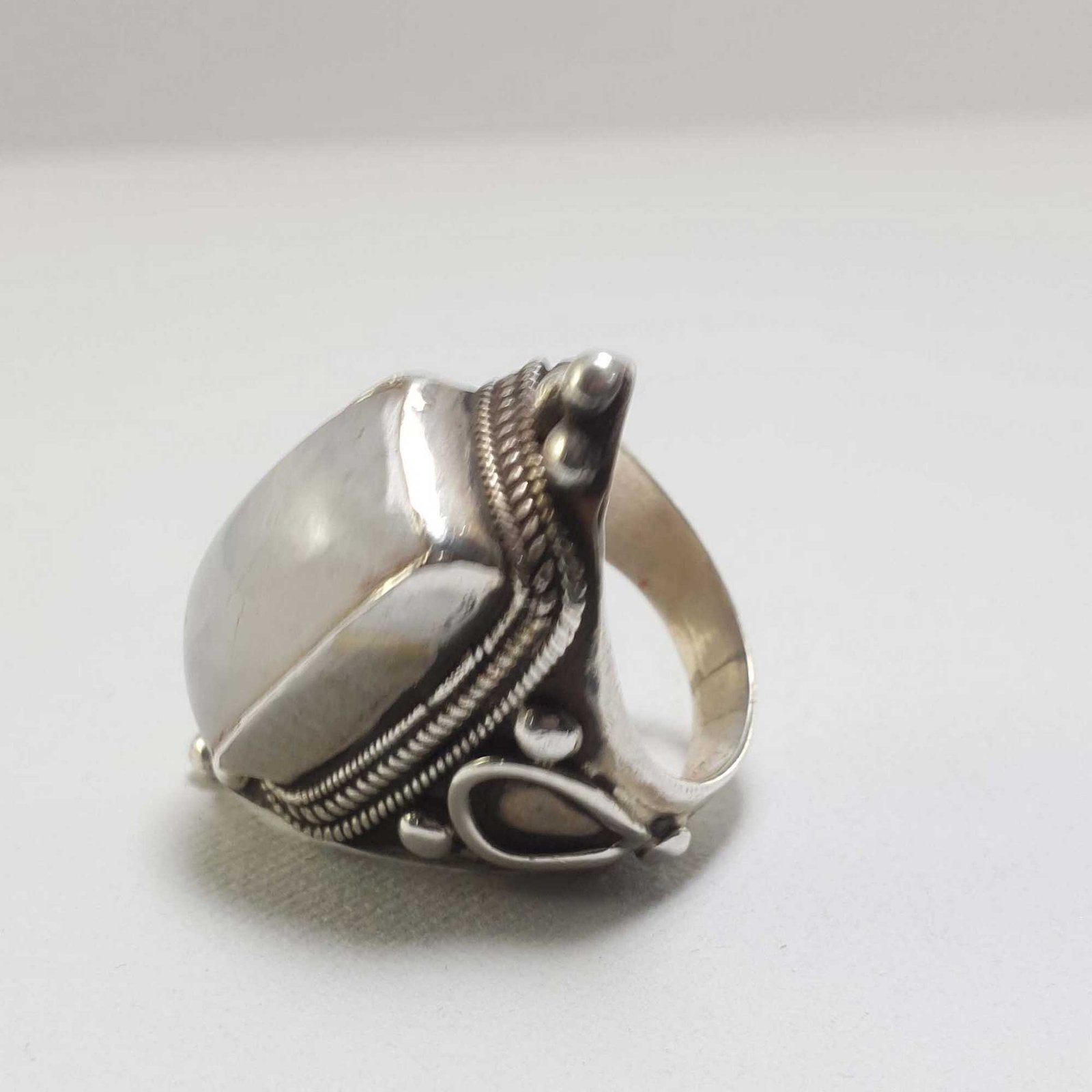 A Nepali silver ring is a beautiful and elegant piece of jewelry that is often adorned with semi-precious stones and intricate designs. These rings are often made by skilled artisans in Nepal who use traditional techniques and designs that have been passed down through generations.