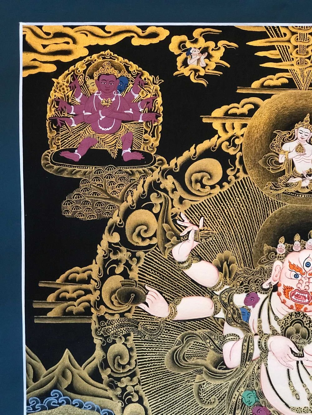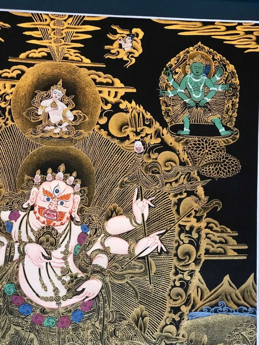 Tibetan Thangka of White Mahakala , Peaceful protector, bestowing wealth and dispelling poverty