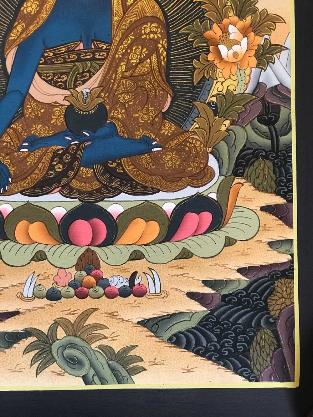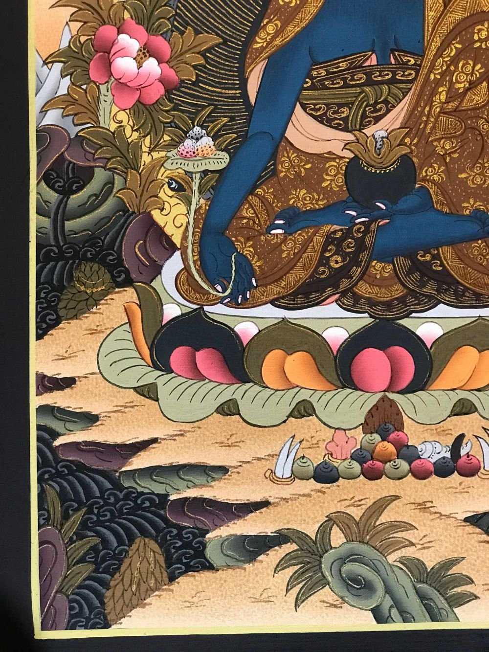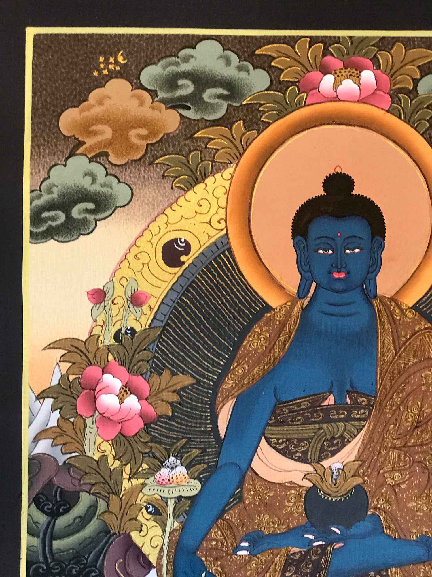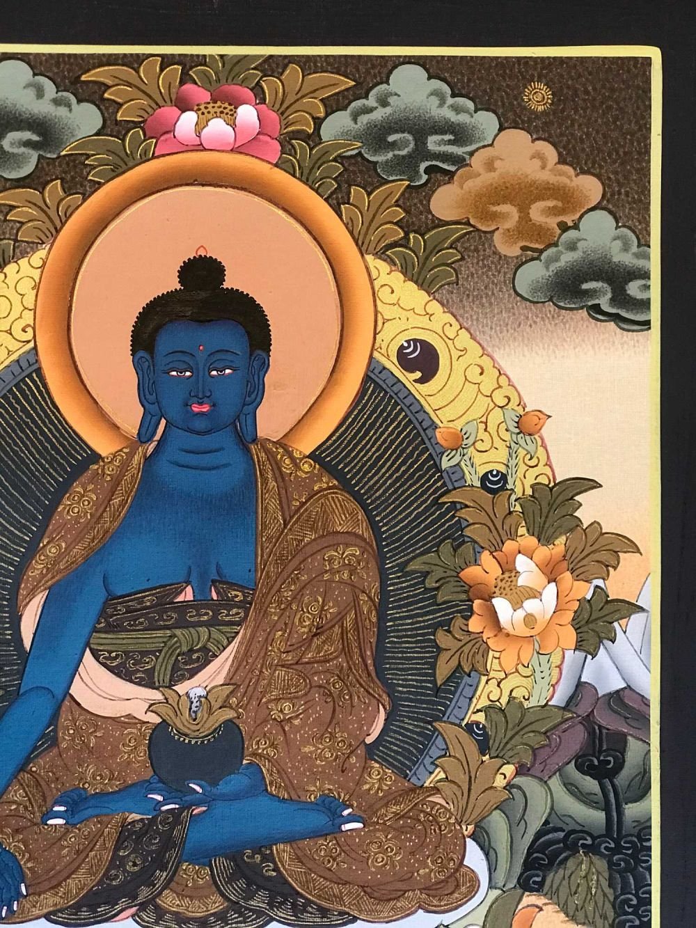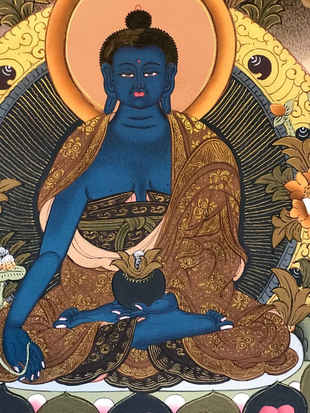 Tibetan Thangka of Medicine Buddha , Healer of physical and spiritual ailments, bringer of health and peace