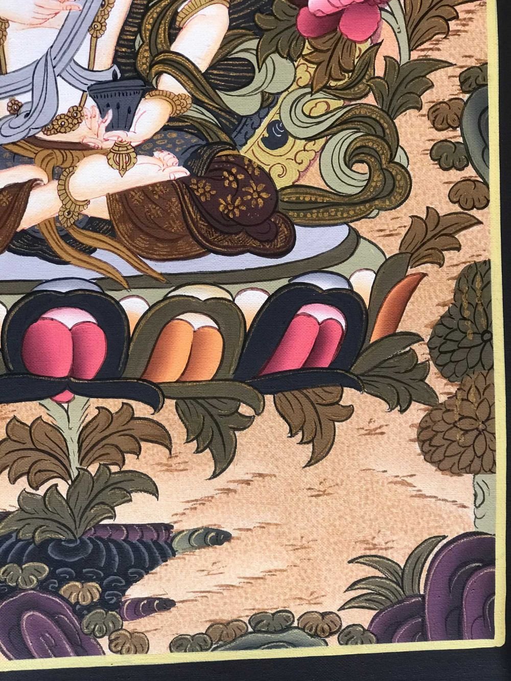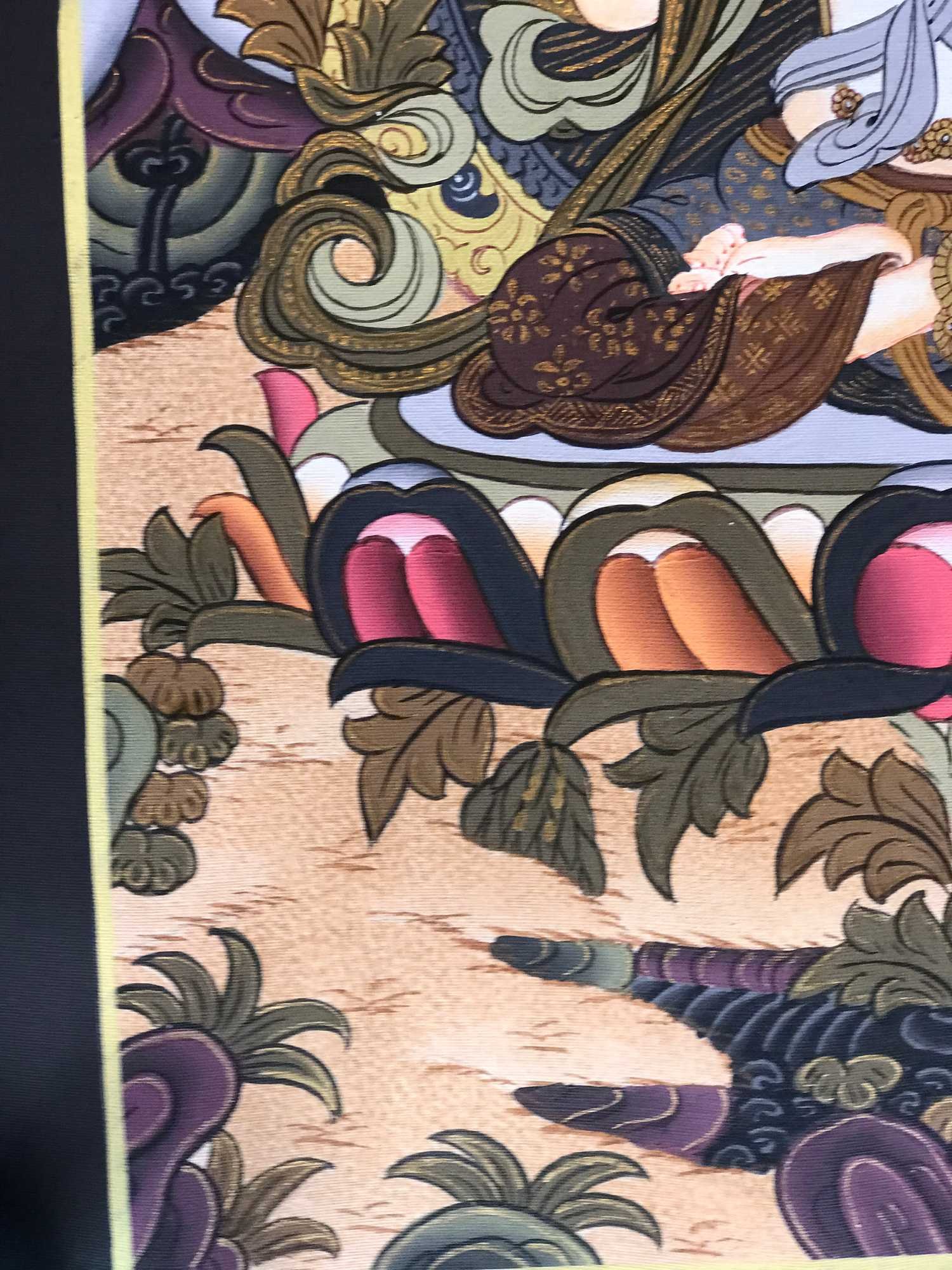 A thangka, also known as tangka, thanka, or tanka, is a vibrant and intricate Tibetan Buddhist painting that serves as a visual representation of spiritual teachings. Crafted with meticulous detail on cotton or silk appliqué, thangkas depict a wide range of subjects including Buddhist deities, sacred scenes, mandalas, and narrative stories. These sacred artworks are traditionally kept unframed and rolled up for storage, resembling ancient scrolls. To protect their delicate nature, thangkas are mounted on textile backings and often adorned with a silk cover on the front. Proper preservation in dry environments is crucial to maintain the integrity and longevity of the silk. Read More