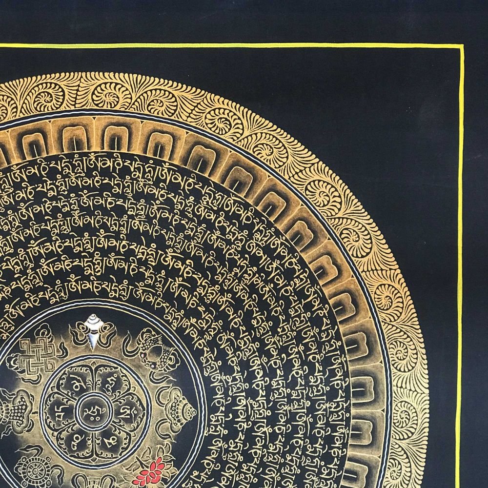 Tibetan Thangka of Mantra Mandala, Black |