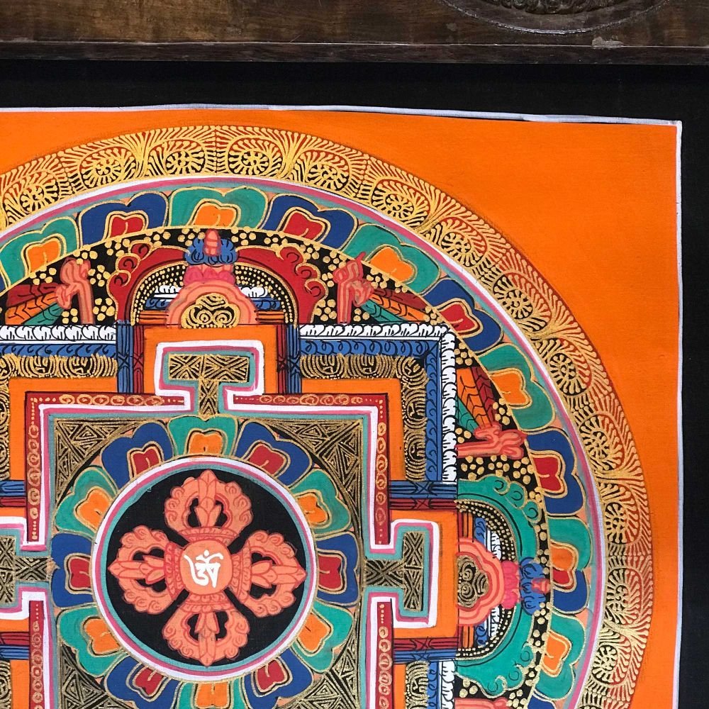 Mandala Thangka painting is a revered form of sacred art in Buddhism, characterized by intricate and vibrant depictions on cotton or silk. These paintings often feature a central deity or Buddha figure surrounded by meticulously crafted symmetrical patterns, geometric designs, and symbolic elements. Mandala Thangkas serve as visual aids for meditation and spiritual growth, guiding practitioners towards inner peace, harmony, and enlightenment. Through their precise brushwork and rich symbolism, these artworks invite viewers to contemplate the profound spiritual journey within themselves, fostering mindfulness, concentration, and a deeper connection with the universal truths of Buddhism. Read More